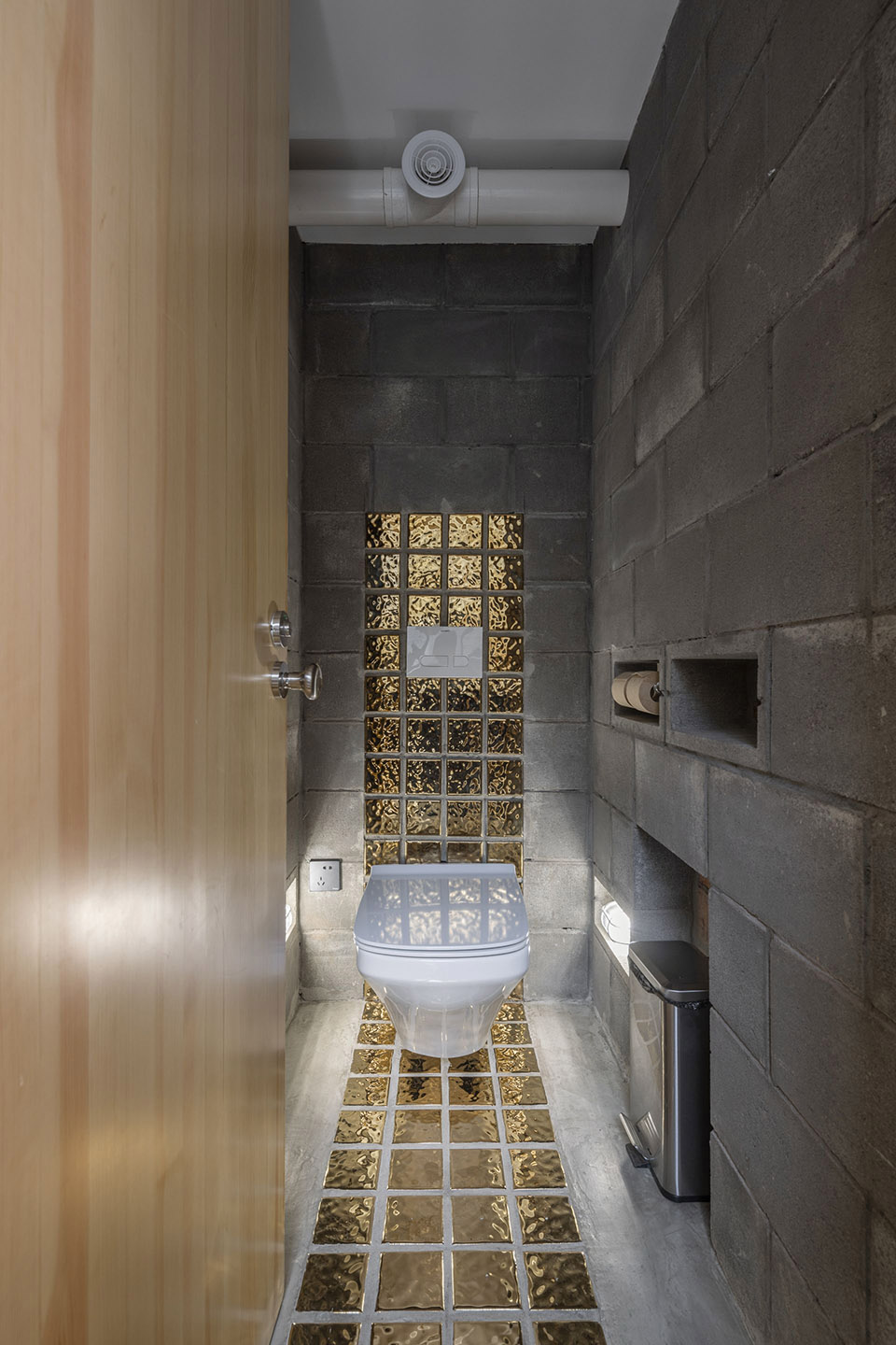 ▼炉罐区设计了镶嵌金色瓷砖的混凝土家具