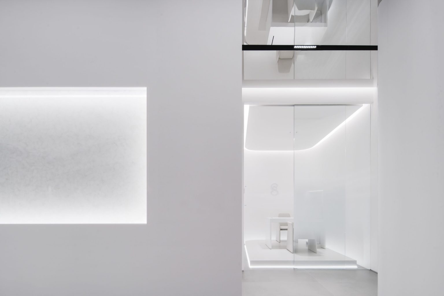 内部空间皆深藏于前台之后。起始明亮,转到通道明度渐暗,完成了公共空间与内部空间的转换,带来静谧私人的心理暗示。借助纵深的通道,形成体验上的迂回缓行之感,创造出贯通的空间效果,带来视觉的连续性,给予人无限的想象,引导顾客去发现与探索,一步步踏上梦境的探索之旅。