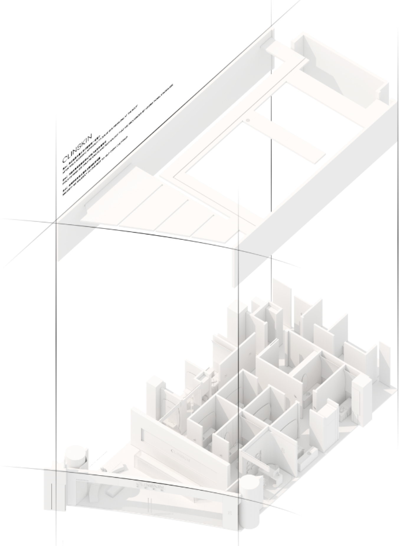 CLINSKIN1置身于梦,当局者迷的潜意识游离,CLINSKIN2镜中窥梦,超脱于梦,梦境清醒的旁观者。在繁杂的尘世中,创造一条通往梦境的通道,此刻抽离于现实。梦境是自我意识的无限放大,由「本我」主宰。初始它本无一物,以「本我」为中心四周是无尽的虚空,虚空的梦境映射是一种光怪陆离的“白”。我希望把这个纯粹的梦境筑造成真实所在,这或许是梦境的初始面目,最开始的地方。