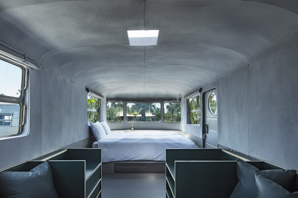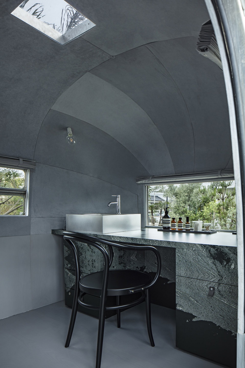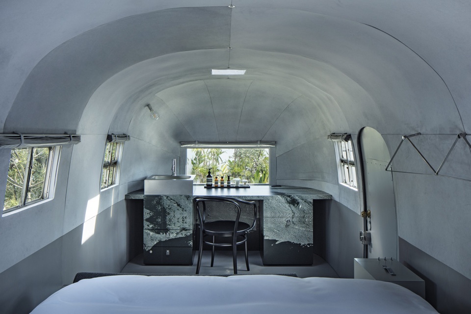 在翻新的5辆拖车中,尺寸较大的2辆由Spartan生产,另外3辆是Airstream生产的露营型拖车。设计者为这些车辆配置了当地房车不常见到的功能类型,包括浴室、厨房和日式小酒吧,以及具有高度私密性的卧室和书房。