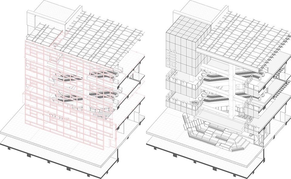 起初,我们接到的设计任务,是针对这堵装饰幕墙的设计工作。但是经过现场的感受和分析,我们认为,问题的根源是”遮蔽”,而非形态。因此,我们提出”先拆除,后激活”的核心策略。