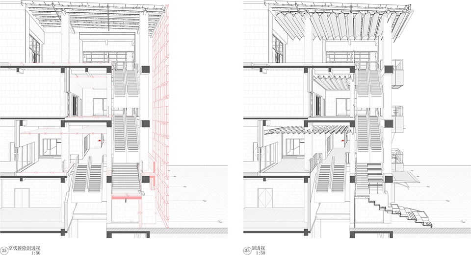 我们选择拆除整面装饰幕墙,这一动作本身即是一种建造——它将“遮蔽”转化为“暴露”,为真正的激活创造了先决条件。拆除之后,我们引入了一系列新的设计元素,旨在重新建立地面与高层商业的物理与情感连接。