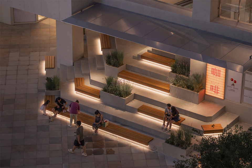 通过设计的干预,9号楼从一个消极的”商业死角”,转变为一个吸引人流向上、充满互动与活力的”垂直客厅”。它不再是一个沉默的建筑,而是一个与广场、家庭和阳光持续对话的开放舞台。