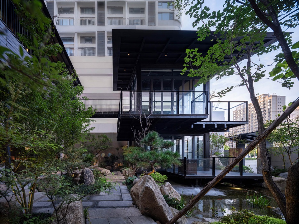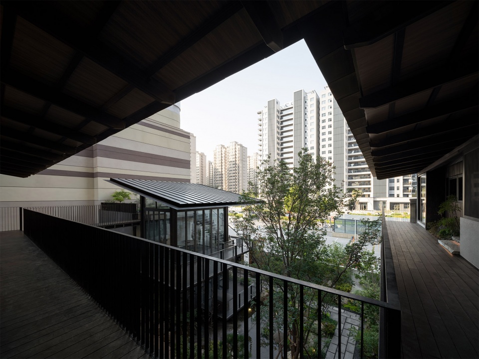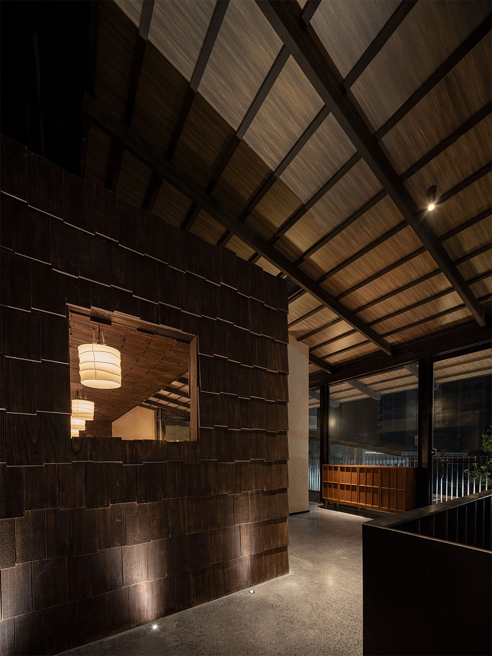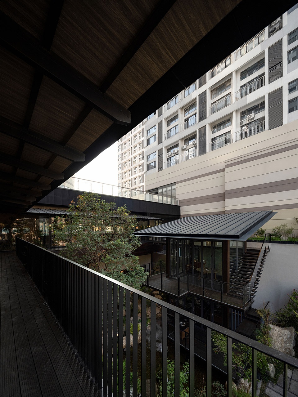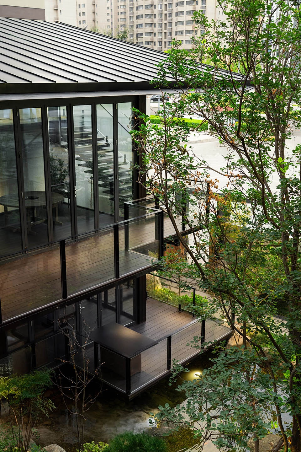 景观亭不仅衔接起一二层庭院,也是为中心庭院提供了更多不同高度层次的观景区域,食客们与自然接触的方式也变得多样。