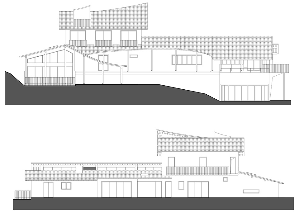 建筑材料:白色真石漆、钢化单银中空超白玻璃、钢结构(木纹漆)、实木椽条、实木望板、小青瓦、氟碳漆