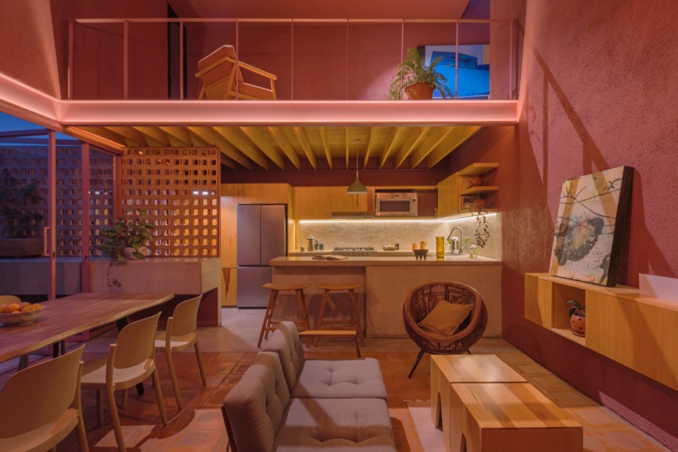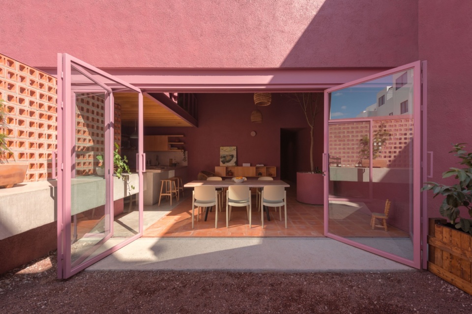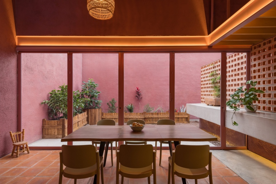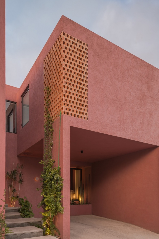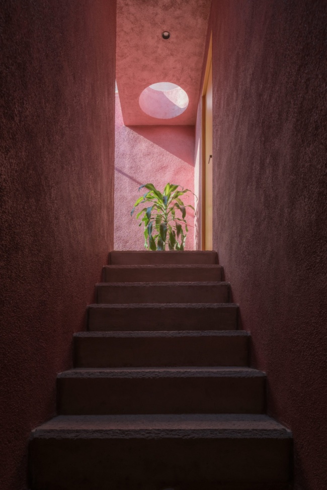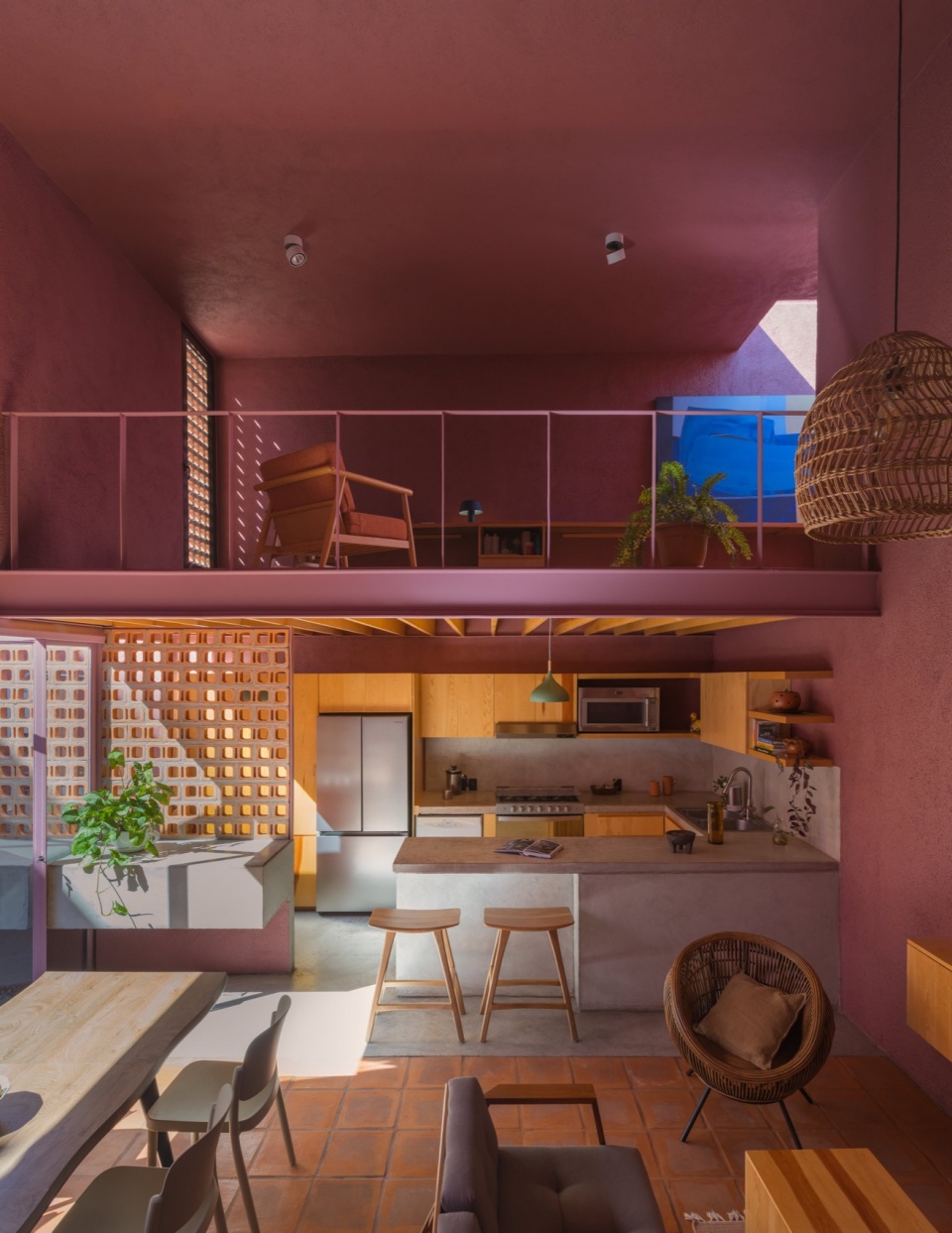 自构思之初,项目便将自然要素——光、色彩、风、阴影与植被——作为塑造空间氛围的基本工具,并使其随时间推移不断变化。经过策略性朝向设计的开口,使阳光得以被控制性地引入室内,形成回应昼夜更替与四季变化的色彩层次。一棵被精心纳入起居空间的树木,通过枝叶的变化、气味以及其鲜活的存在,标记着时间的流逝。甚至墙体的色彩——取自金枪鱼卡多纳仙人掌——也会随着太阳运行轨迹的变化而发生转变,使住宅的视觉身份与其所处环境形成亲密而直接的联系。