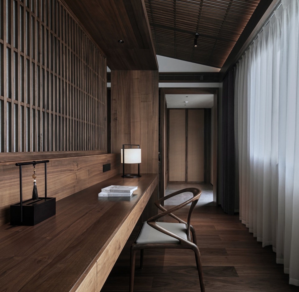 书房的设计,旨在营造一处可供静心沉潜的“精神斋房”,将外界的喧嚣过滤为温润的光影,为阅读营造出最佳的氛围。