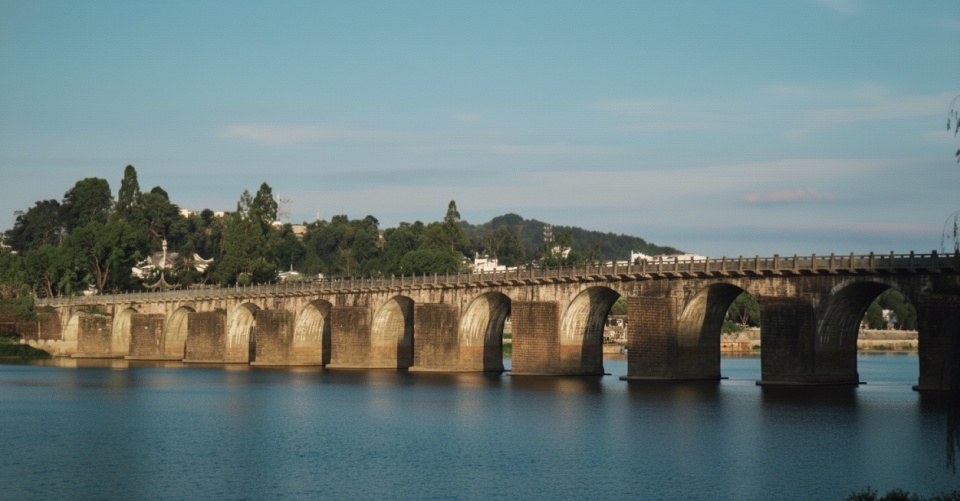 南宋端平元年(1234年)由当时徽州知府刘炳建造,以十六孔石拱横跨江上,徽州现存最大的古代石拱桥。