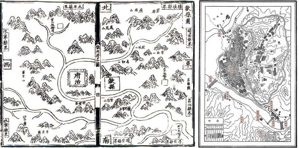 ▼徽州府治地图(弘治)与项目地及周边国宝位置图