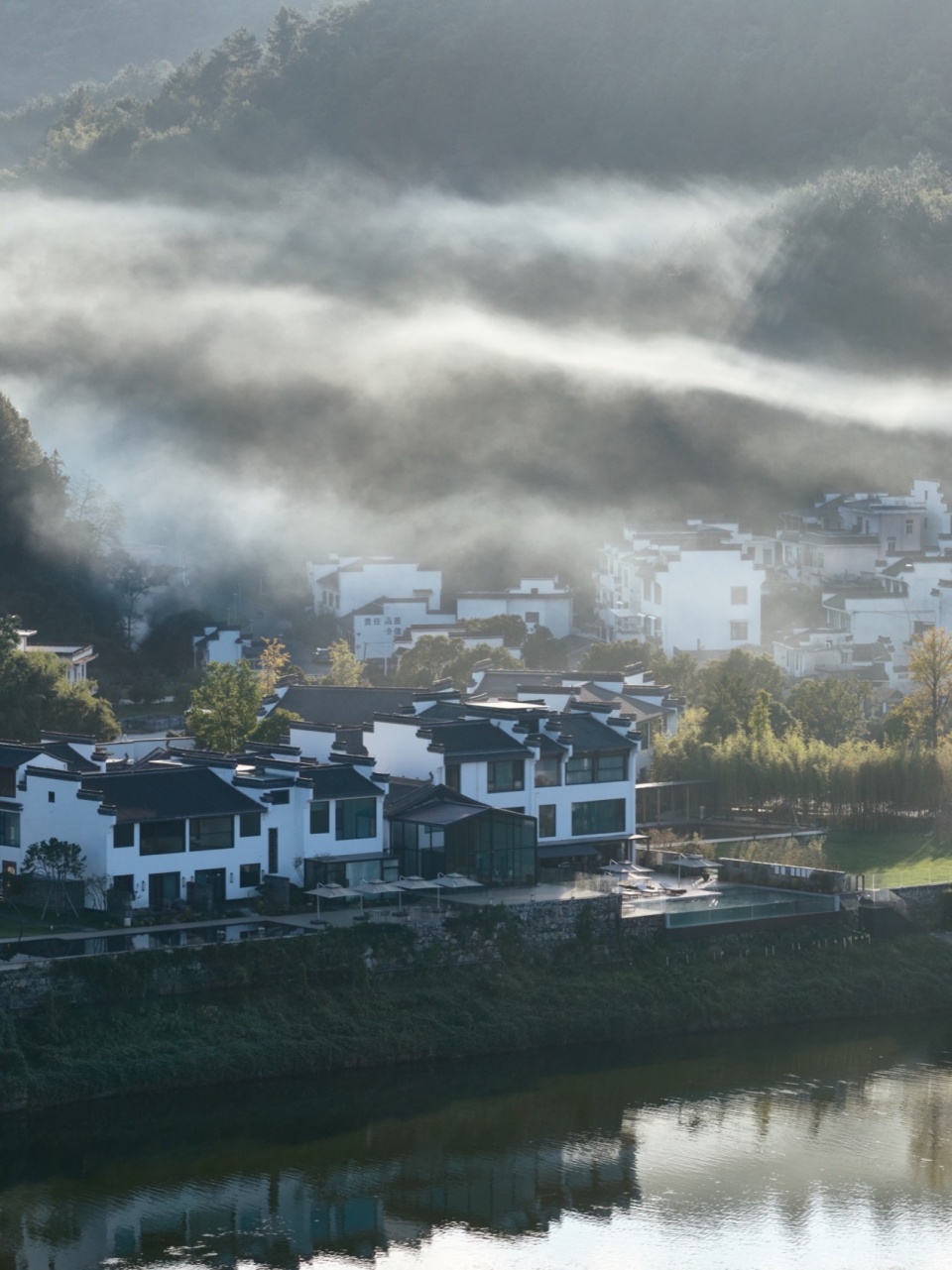 我们营造的不只是一组徽派院落、一处栖心养性的度假秘境,更是一出新安江畔的徽州旧梦。为此,我们尊重历史文脉与在地肌理,保持山水自然与建筑空间的对话,注入现代生活方式与东方美学风骨,营造沉浸式人文生活体验。