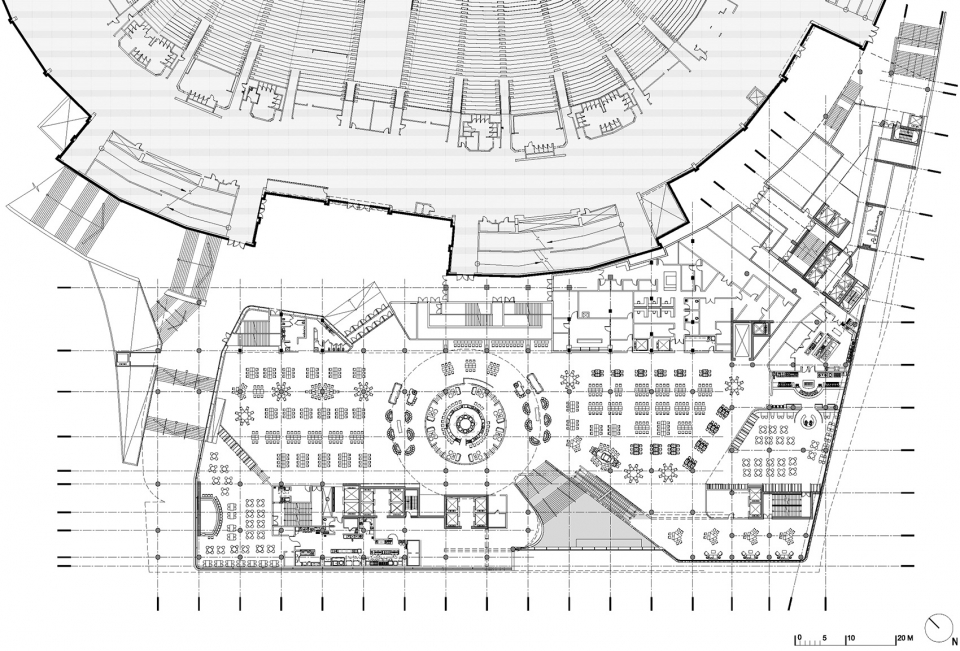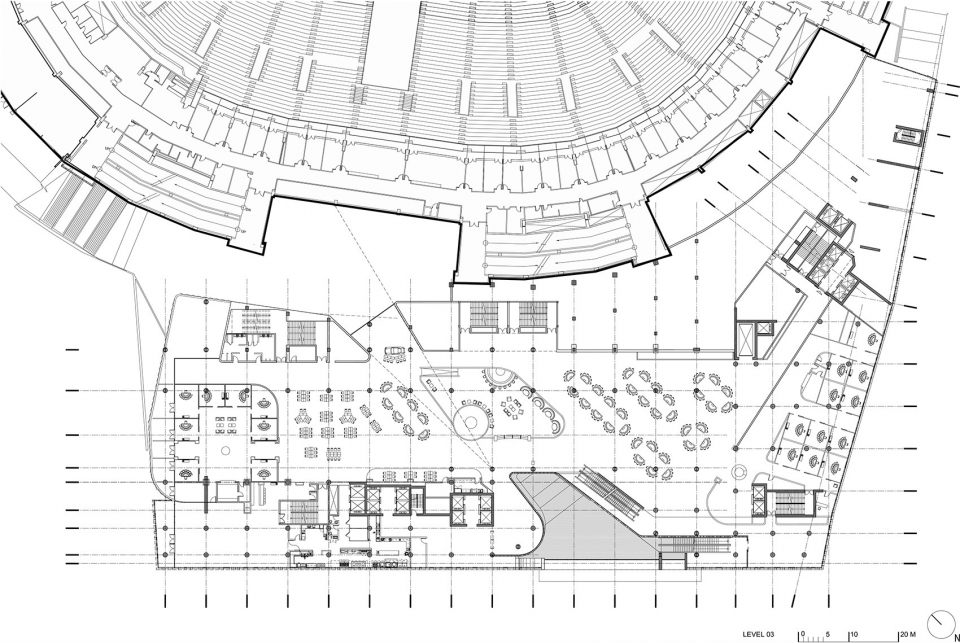 建筑内部与外部的无缝连接进一步突显了设计的优越性。清晰透明的超大尺寸玻璃将内部的使用者与外部充满活力的街道以及环绕城区的自行车道连接起来,同时吸引着路人走进大楼,享受八家餐厅的美食以及各种休闲设施。商业空间为首层带来更多活力,洒满阳光的室内空间犹如在向客人们致意,邀请他们在7万2千平方英尺的多层赌场中试试手气。PARQ大厦的赌场中包括11间私人沙龙,其中4家拥有露天阳台,能够欣赏到震慑人心的城市天际线景观。PARQ还致力于提供商业发展空间。建筑第四层设有超过6万平方英尺的多功能会议及活动空间,包括会议室、灵活的集会空间和13间宴会厅——其中最具特色的是PARQ大宴会厅,它以15,604平方英尺的面积成为了全温哥华最大的酒店宴会厅。