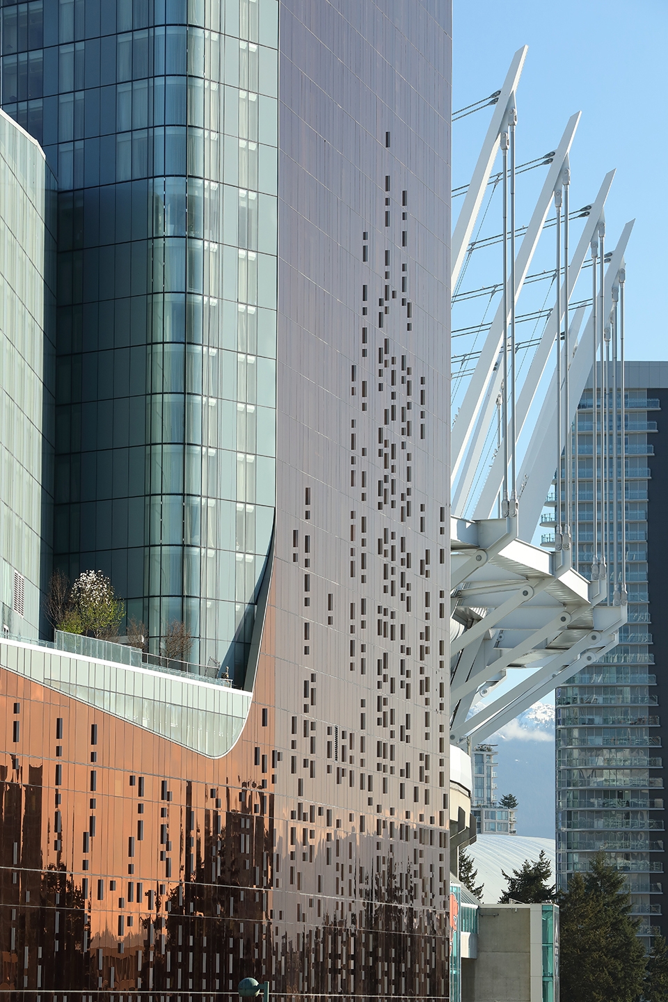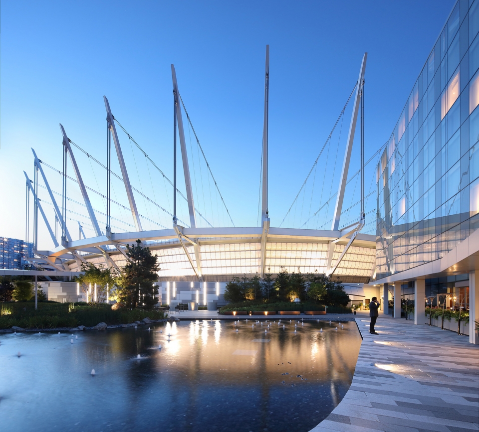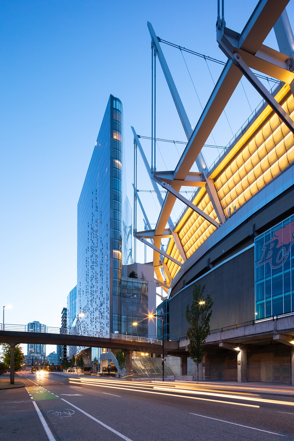 PARQ大厦被时尚的Yaletown和Gastown街区所环绕,这座多功能的建筑综合体对温哥华多元的自然和文化环境传达了敬意。从围绕着标志性体育场的建筑元素开始,设计团队希望构建一条完整而流畅的体验路径,从而将BC Place, PARQ大厦以及周围的街区和壮观景致无缝地连接起来。