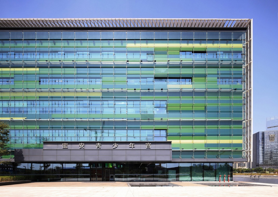 宝安中央绿轴文化综合体紧邻前海湾和南中国海,是一组旨意为城市创造全新公共园区,同时衔接滨海景观与高度密集城市商业区的总体规划项目。方案通过国际邀请赛胜出,总规模合共110,000平方米, 当中包括三大主体建筑 :图书馆、青少年宫及演艺中心。首期图书馆与青少年宫已分別投入使用,而最后的演艺中心项目正在建设中,预计将于2020年完成。