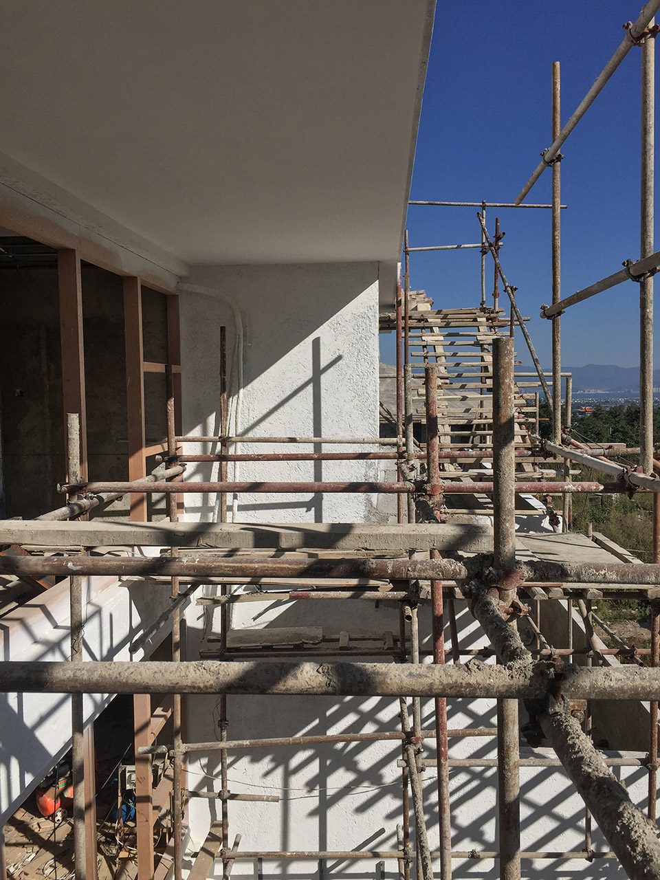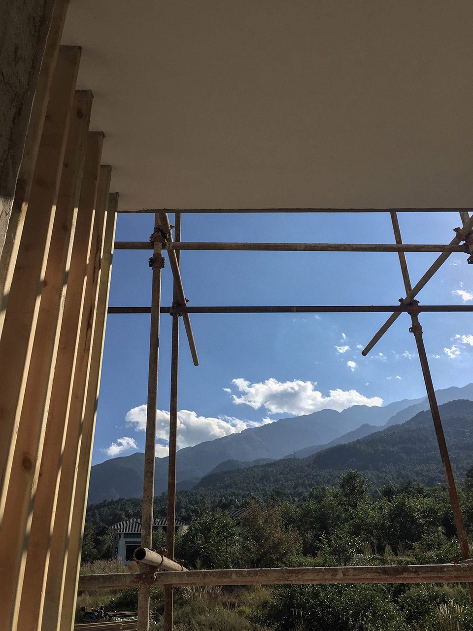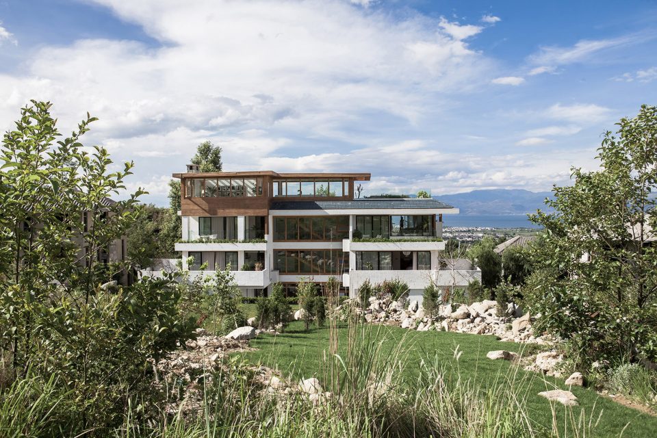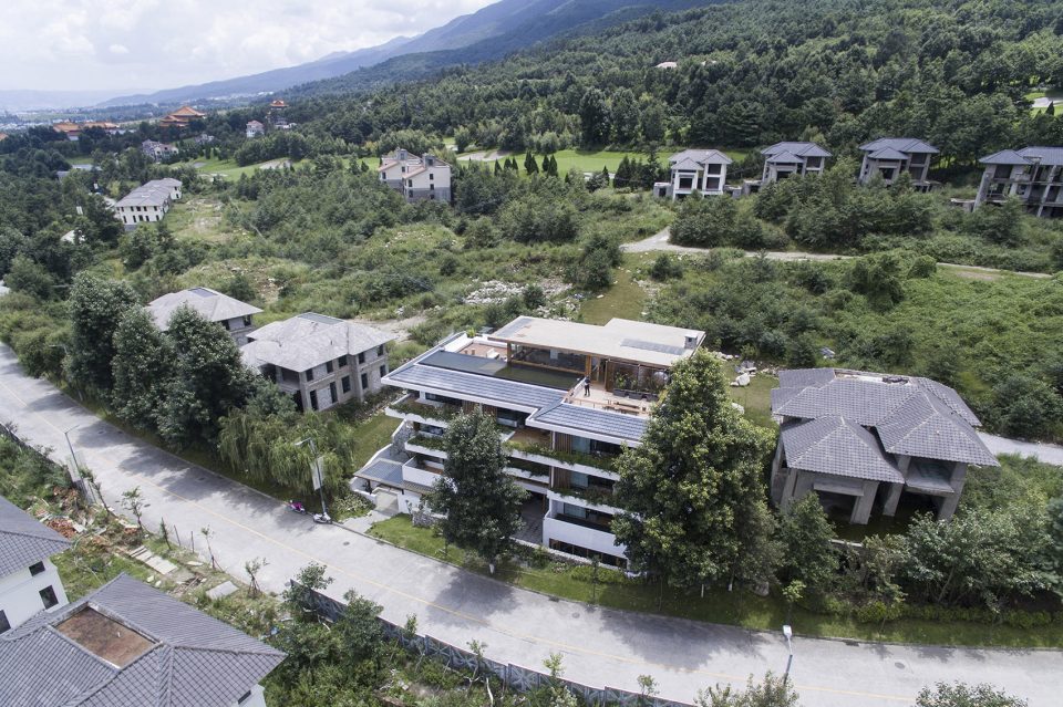 大理这片水土近些年滋养出不少有趣的建筑实践,独特的场地环境为设计提供了一种全新的介入方式。大理拾山房精品酒店位于苍山国际高尔夫社区,背倚苍山,面向洱海,是风水绝佳之处。苍山山麓较高的地理位置为其提供了全景洱海和大理古城的视野,向东侧看去,不远处崇圣寺层层楼阁从三塔一直绵延上苍山山腰,重檐的大殿掩映于茂林之中,大理山川之壮美,此处一览无余。