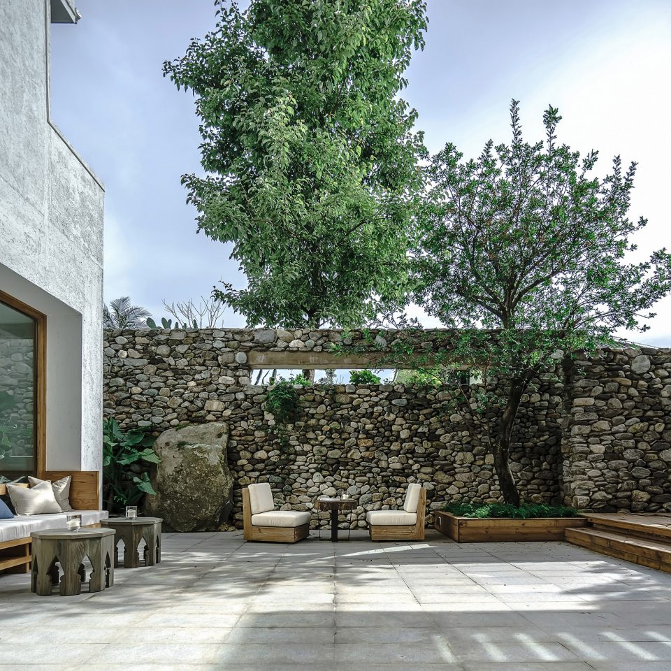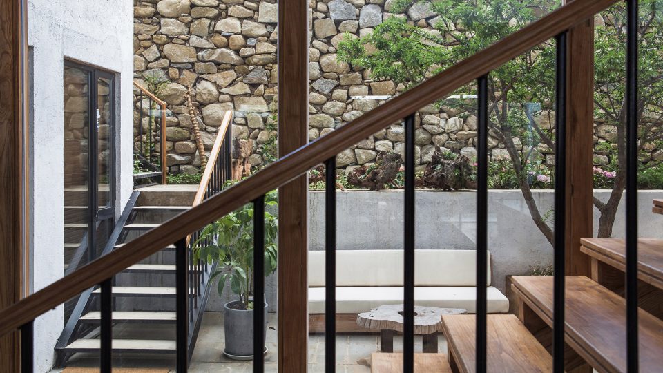 ▼山石堆砌的围墙带来原始的自然感