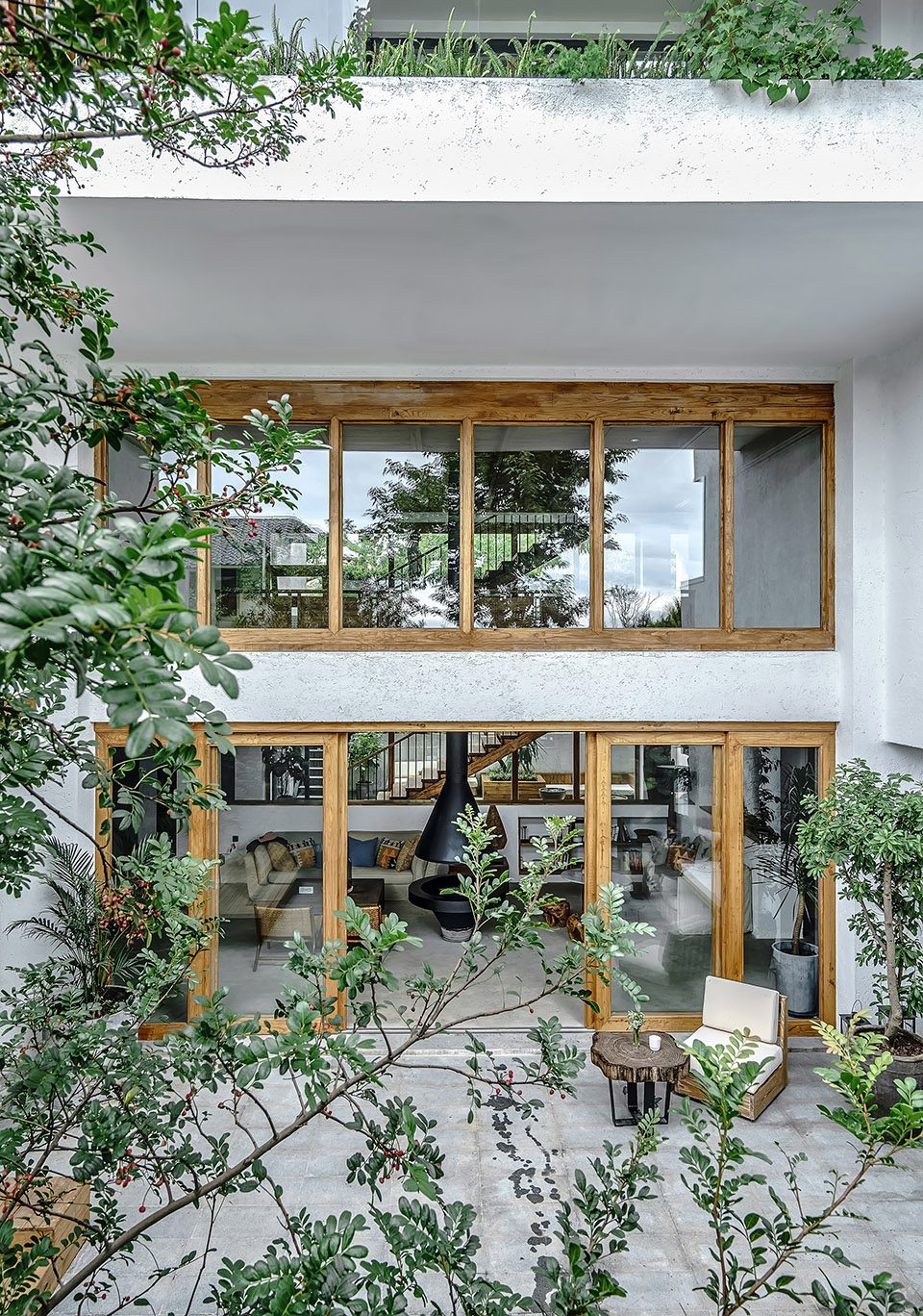 ▼庭院和大厅之间以落地玻璃连接