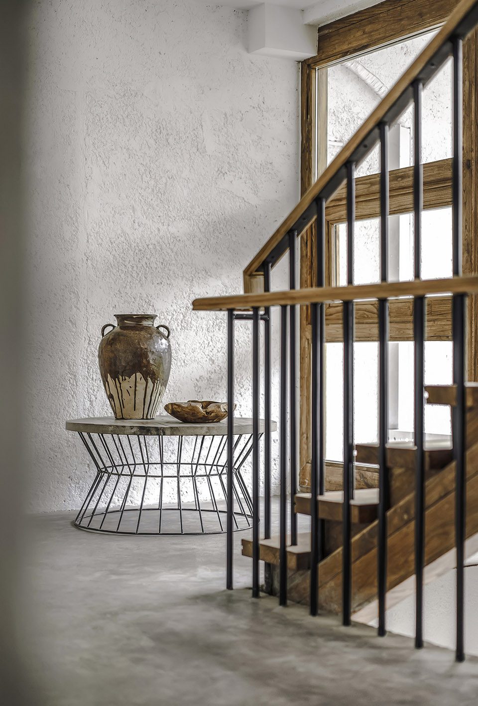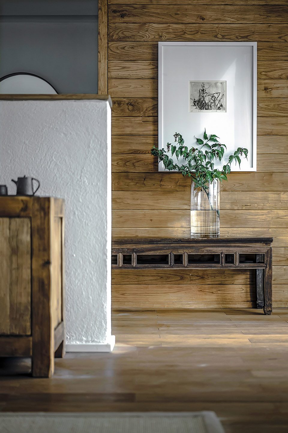 天气晴好的时候大理的阳光非常干净纯粹,因此光在大理对于建筑的空间是非常重要的因素。拾山房内的许多空间都有对光的设计,巧妙利用阳光在室内形成极其动人的光影变化。顶层的四面玻璃以及天窗,每间客房内面向露台的落地窗,都是对阳光最好的呼应。而室内设计在物件陈设的设计上也非常细致地考虑了光影的影响,木柜、陶罐和挂饰的几何关系在光影下显得格外好看,因此每一个角落的细节都经得起推敲。