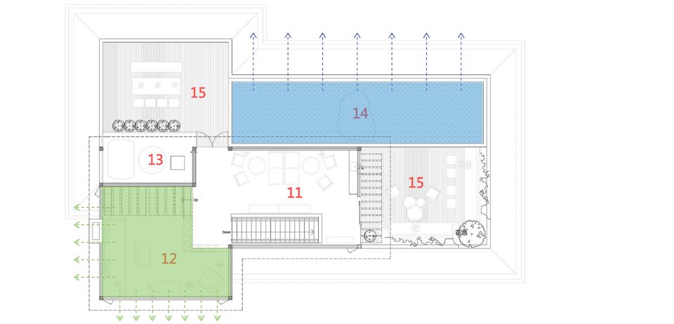 ▼北侧面向洱海的长方形浅水池