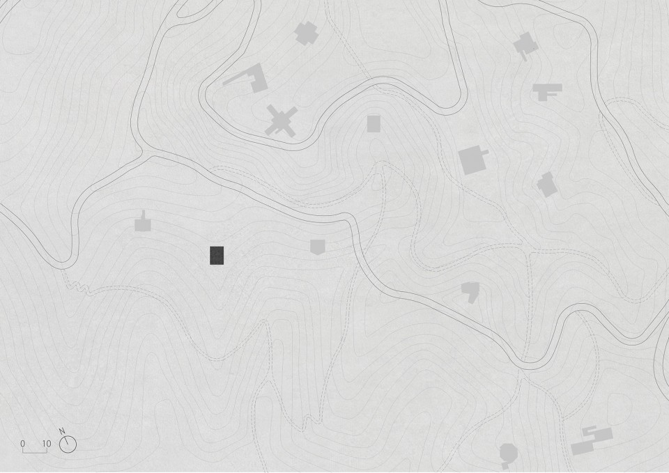 项目位于中国安徽省黄山市休宁县齐云山镇东亭村,距离著名的黄山景区有一小时车程。村子约两千居民,旅游商业不发达,只有一个新建的酒店,有少量游客出入。来此的住客目的地多为黄山,因为距离较近,在此休息短住。离村子两公里外的齐云山,也是较为著名的景区,典型的丹霞地貌,是道教名山之一。而村子周围的山势平缓绵延,山体松林密布,夏季也没有蚊虫。我们的项目就身处村子周围的山林里,从属于一个分散式管理的酒店。业主希望酒店的客房站立在林中,彼此独立,由蜿蜒的山路串起。酒店一期的几个套间委托给了不同的设计师,它们分享三个主题,分别是情侣,亲子,和朋友聚会。我们设计的是其中一个情侣套间。