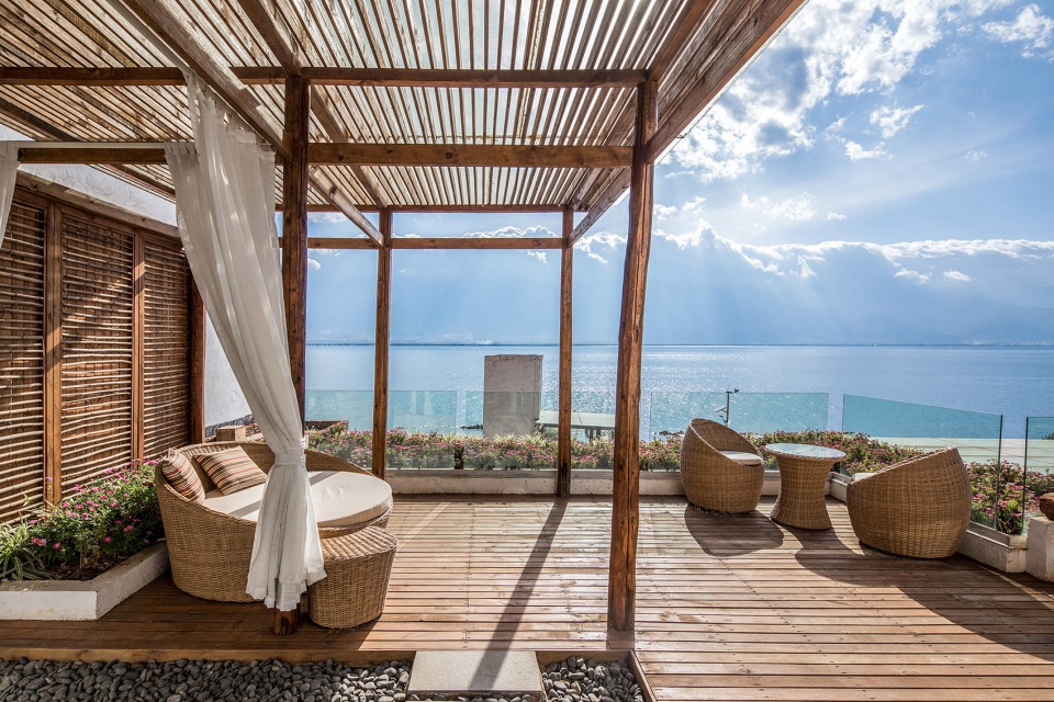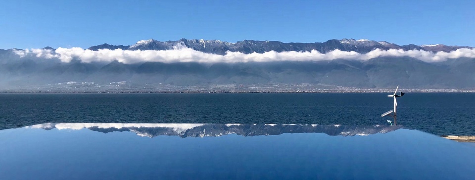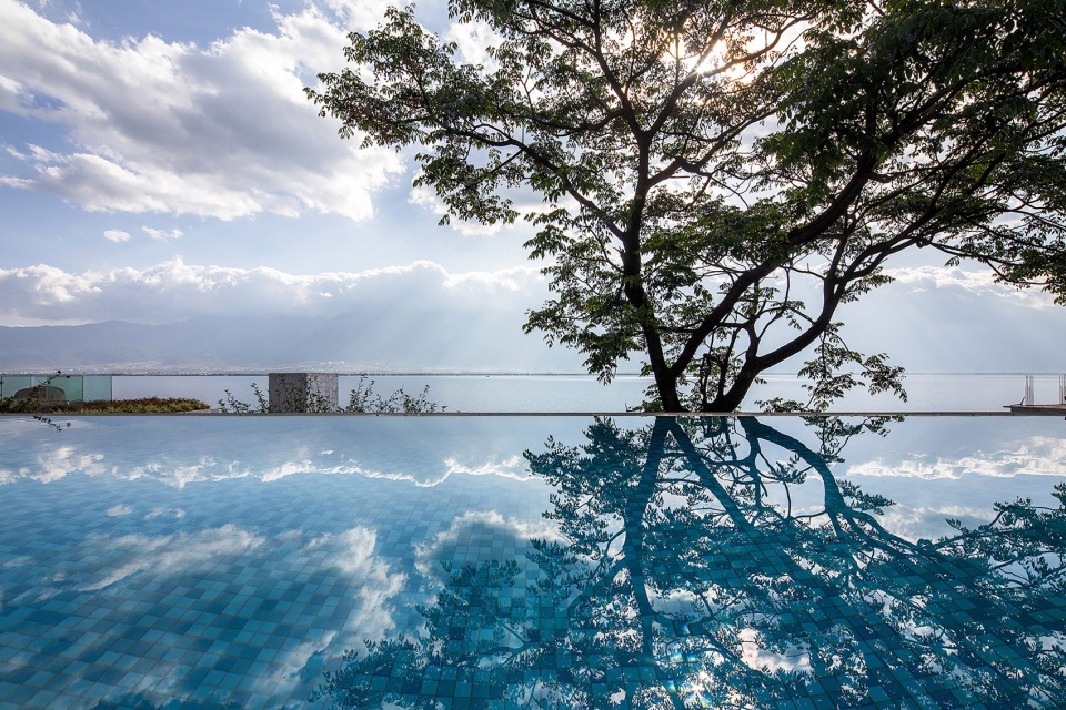 ▼下院屋顶平台景观-客人从接待大厅乘坐电梯到这里之后,先在平台上俯瞰洱海,远眺苍山,建构了与山水的第一次对话