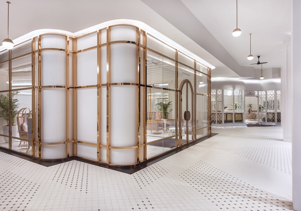 玻璃屋餐厅的设计灵感源于英国维多利亚时代的温室设计,可容纳110人用餐。格子图案被同时应用到金属框架的墙面和玻璃立面上,为餐厅赋予了如温室般的温馨氛围。沙发坐垫印有植物和与热带元素有关的图案,带来“热带伊甸园”般的独特气息。