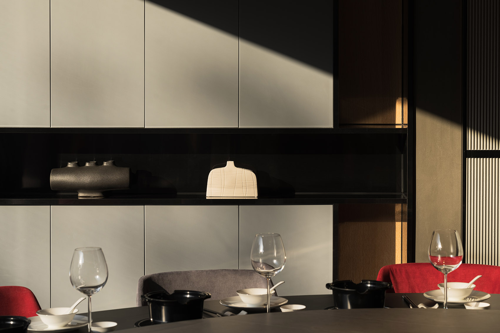 ▼竖向肌理增加空间层次&备餐柜细部