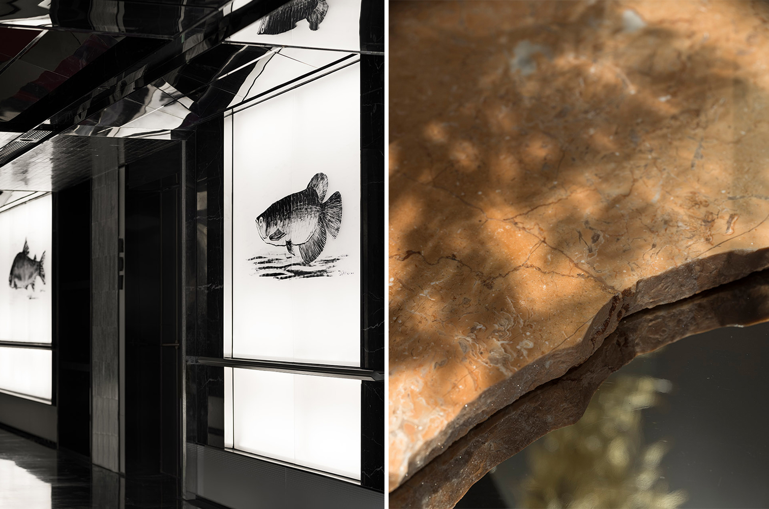 ▼走道上的鱼&边几上的石材