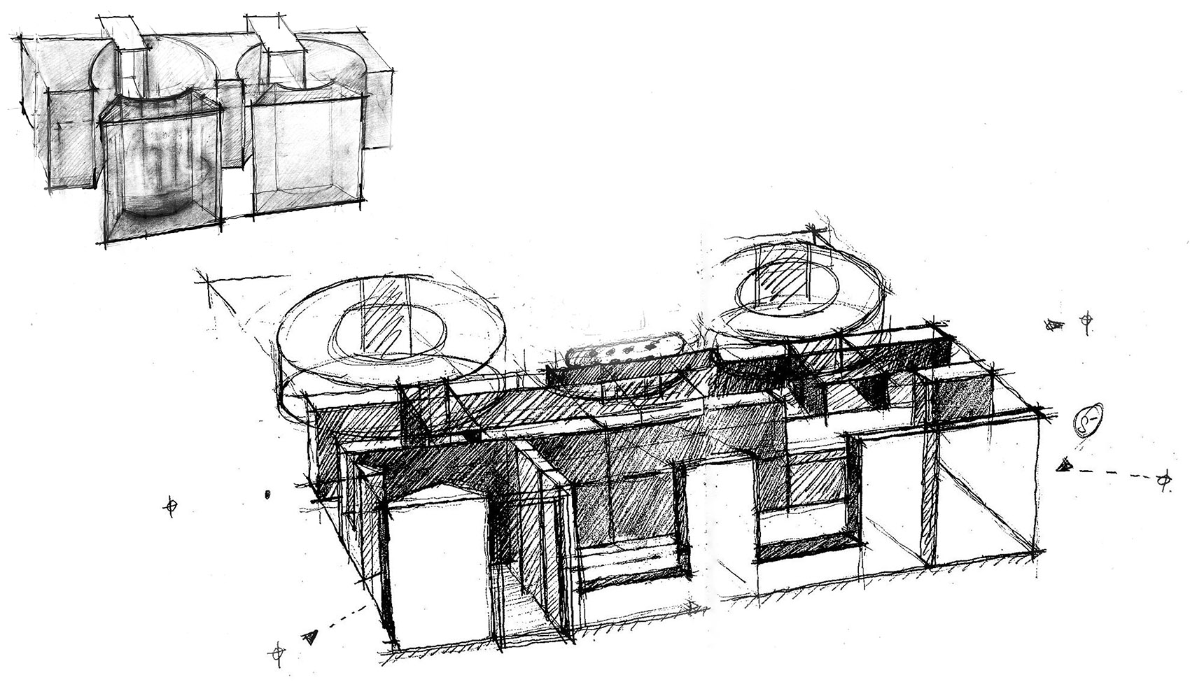 ▼圆形和方形空间连接