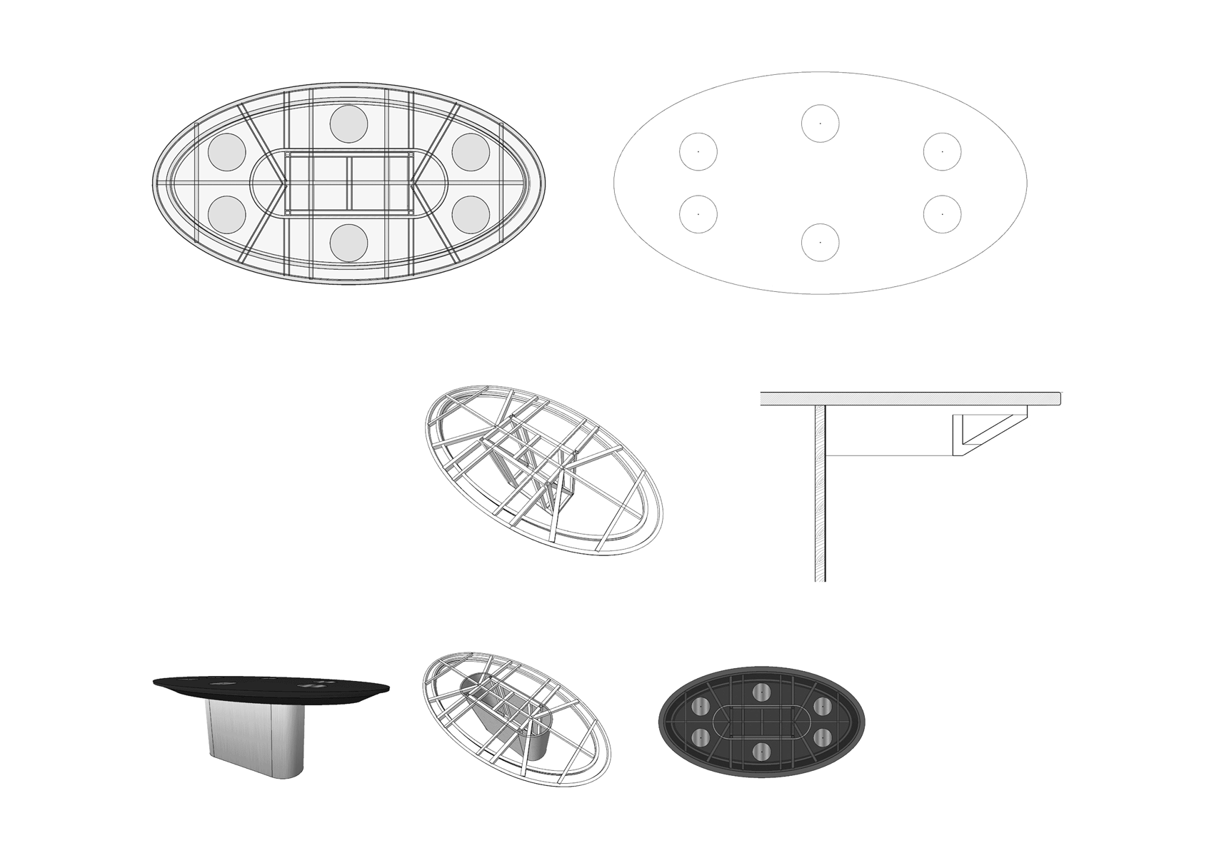 ▼配合空间设计的椭圆桌&家具与墙的体块感