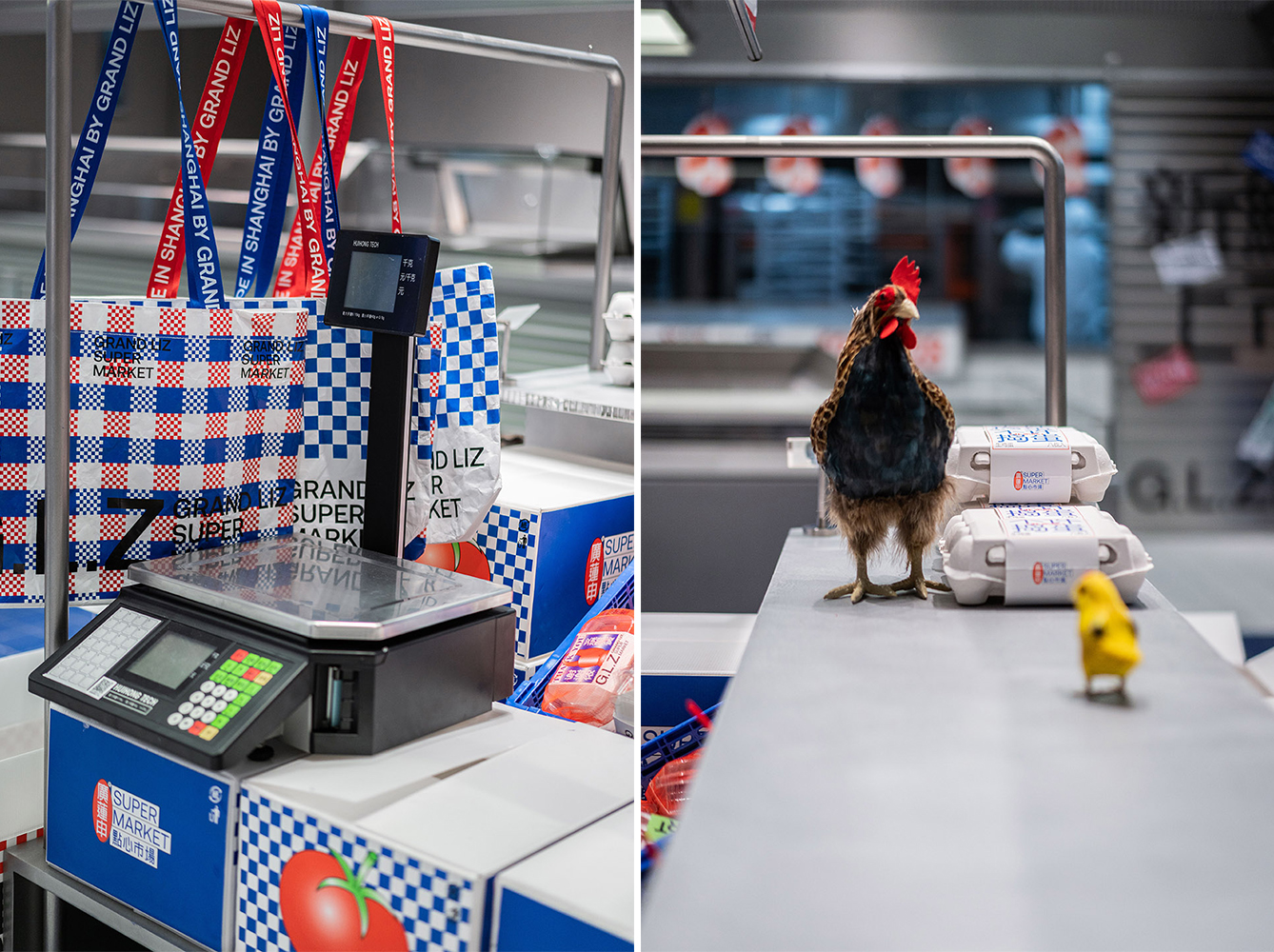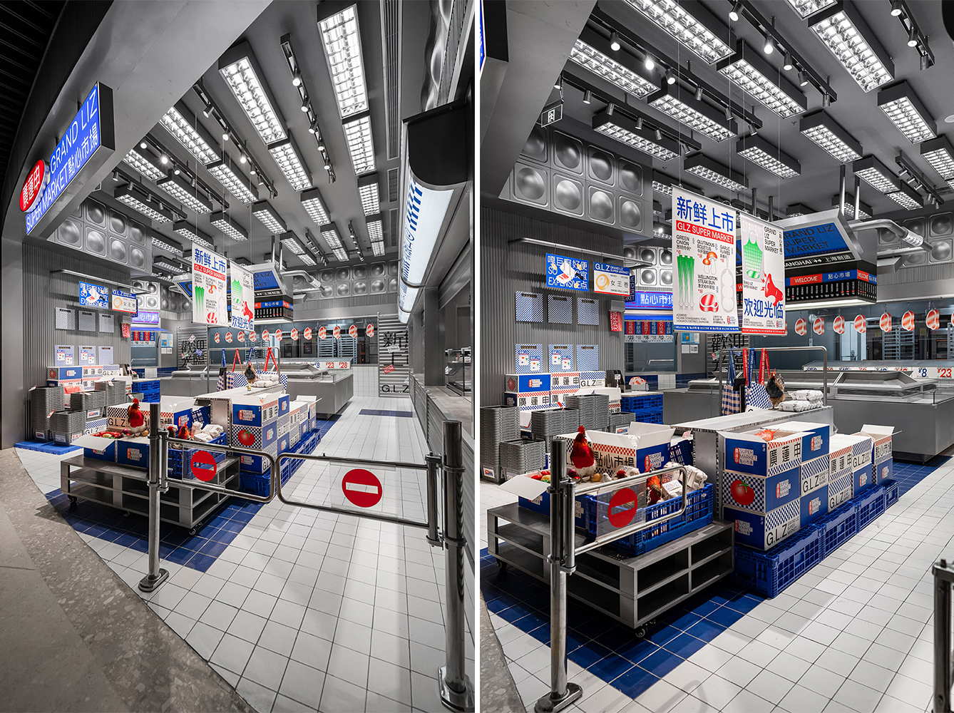 ▼为契合“市集”主题定做的四面围合的产品冷藏柜