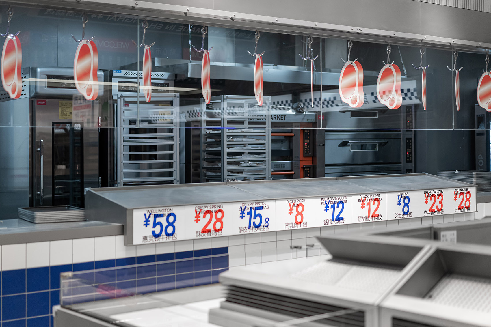 这是廣莲申的一次新尝试与开端,后续我们还会带来廣莲申公园主题店、弄堂主题店等,呈现完全不同的消费场景。我们希望消费升级并不仅仅局限于“装饰”的表面改变。而是从内而外持续性的输出属于当下的内容,通过内容、场所、产等等与消费者保持对话,保持新鲜感。为契合“市集”主题定做的四面围合的产品冷藏柜,产品随柜体的造型从高向下陈列出,店铺员工站在柜体中央一声售卖吆喝,场景仿佛转回到了热闹烟火气的卖菜市场,只是摊主们齐胸高的各种菜肉干货换成了各式海派点心。