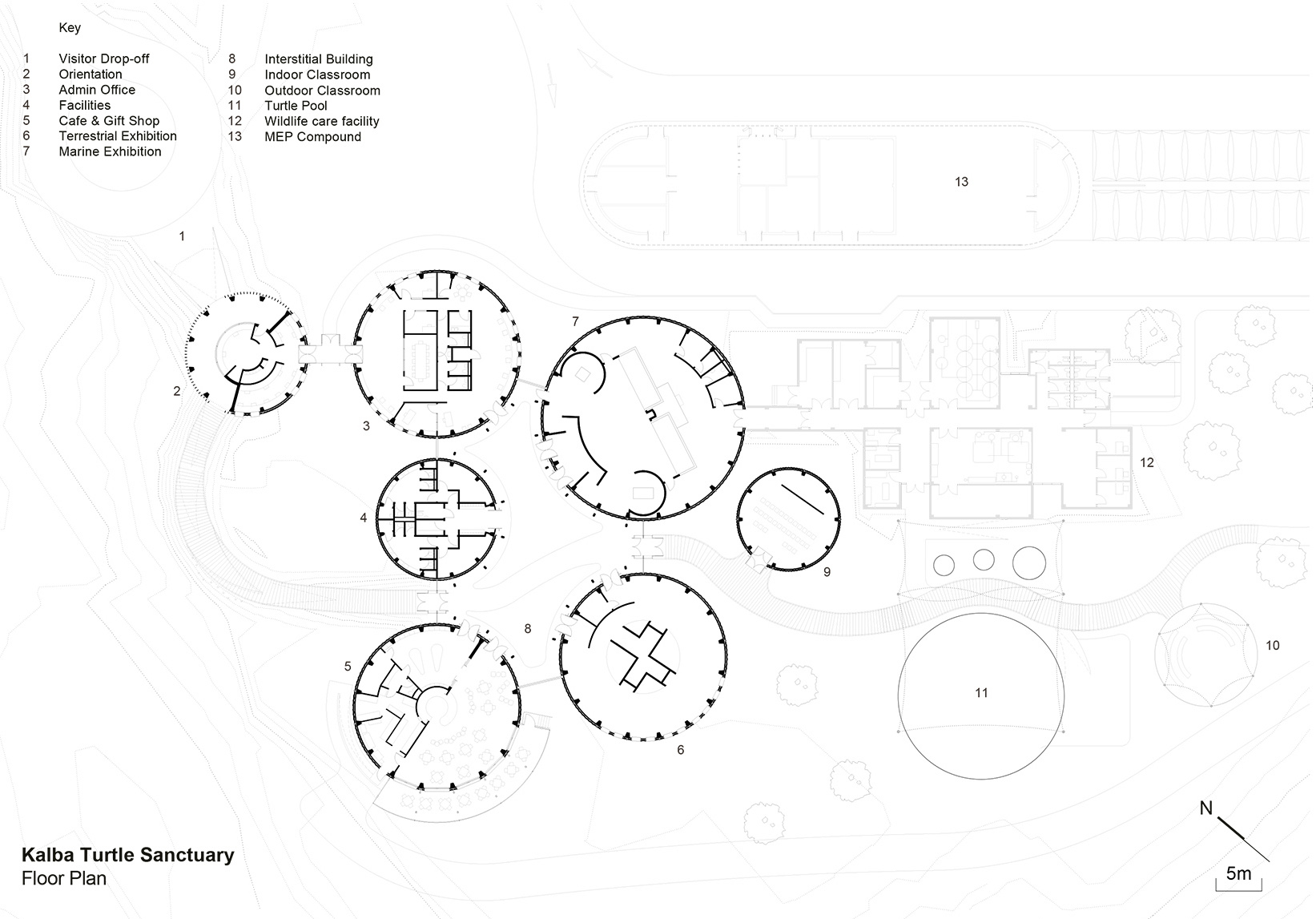 Khor Kalba海龟和野生动物保护区位于海湾最敏感且生物多样性最丰富的自然保护区之一,它由一组圆形建筑构成,为海龟和濒危鸟类的康复和培育创造了场地,并与当地的专业组织建立了合作关系。