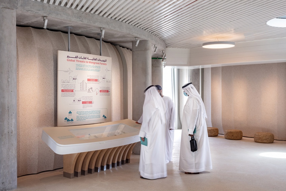 游客中心由7个相互连接的舱体和张拉结构组成,同时设有一个露台,可将红树林和远处山脉的美景尽收眼底。中心内部包含了水族馆、展览区域、游客设施、工作人员办公室、兽医设施、教室、礼品店和咖啡馆。一条精心设计的自然小路将引领游客们探索保护区内原生红树林和滩涂的生物多样性,并观察生活在其中的一系列物种,包括海龟、黄貂鱼、瞪羚和稀有的阿拉伯科拉德翠鸟。