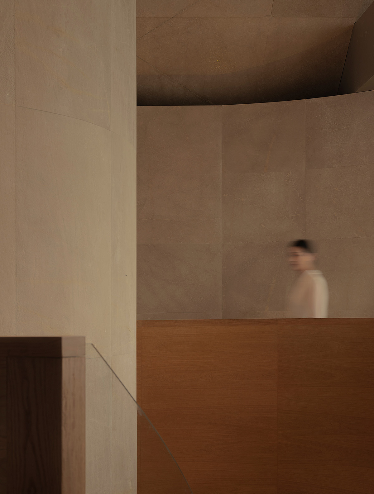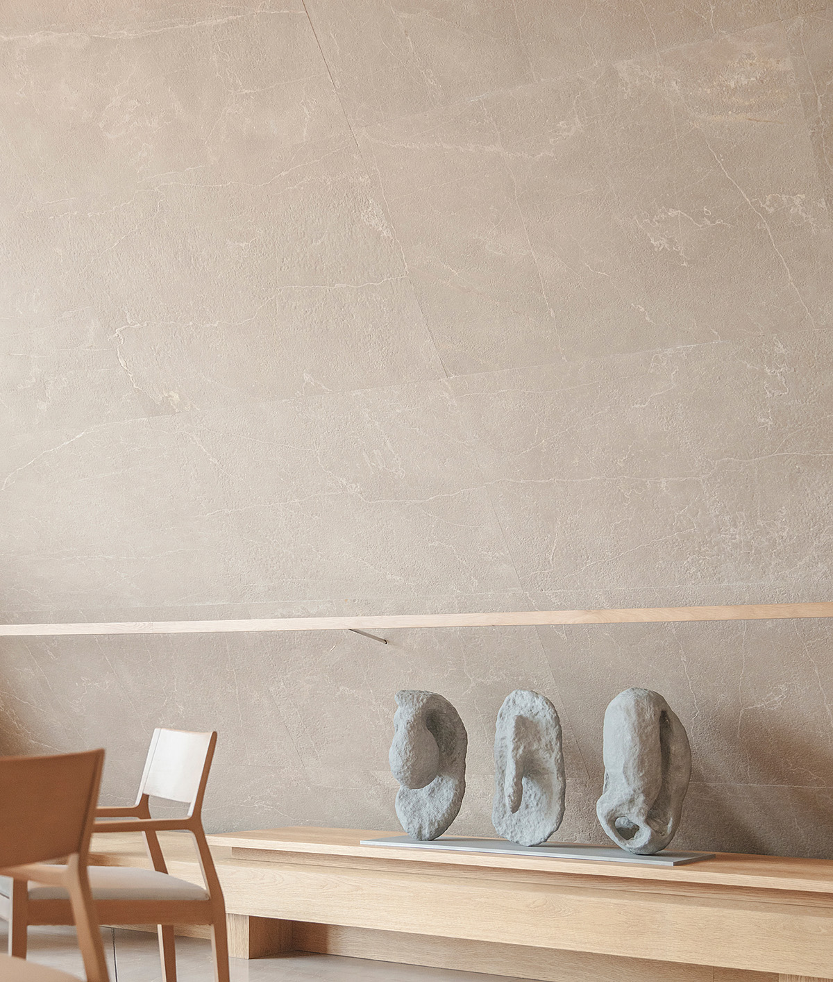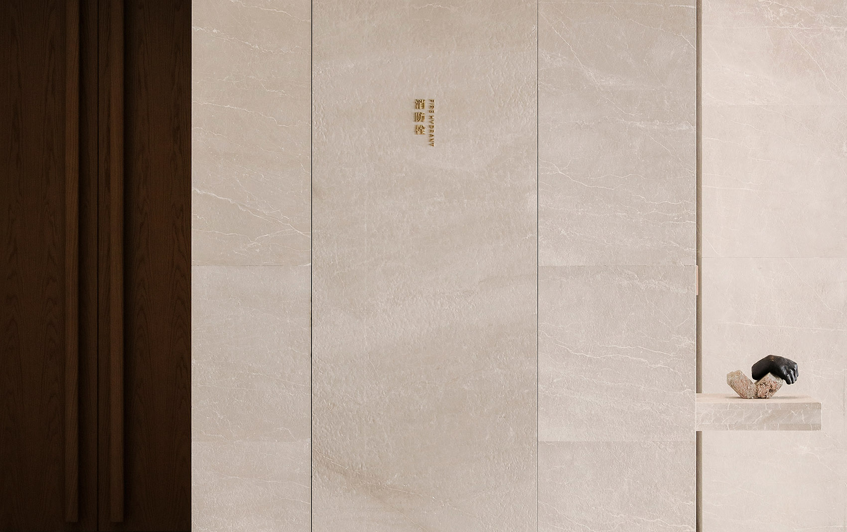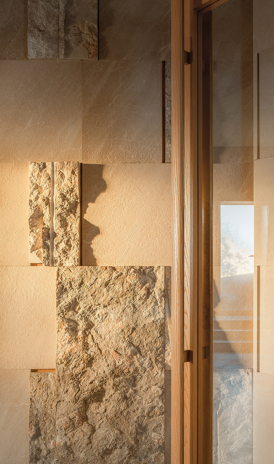 材料:贵州米黄石、橡木、质感漆
