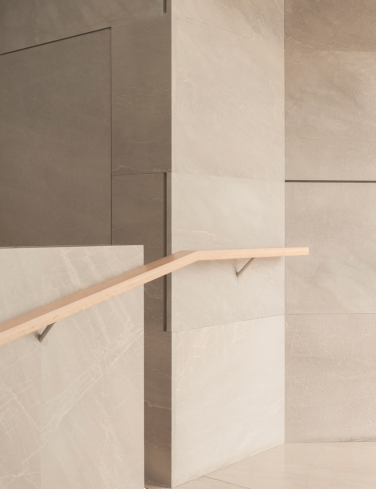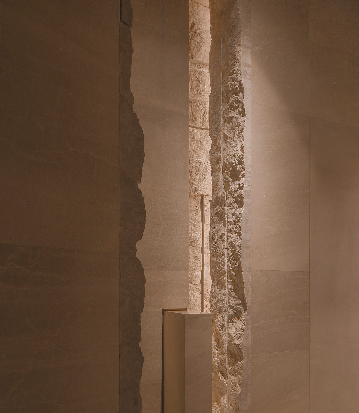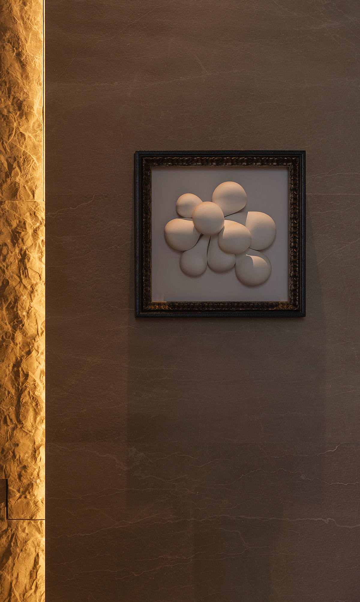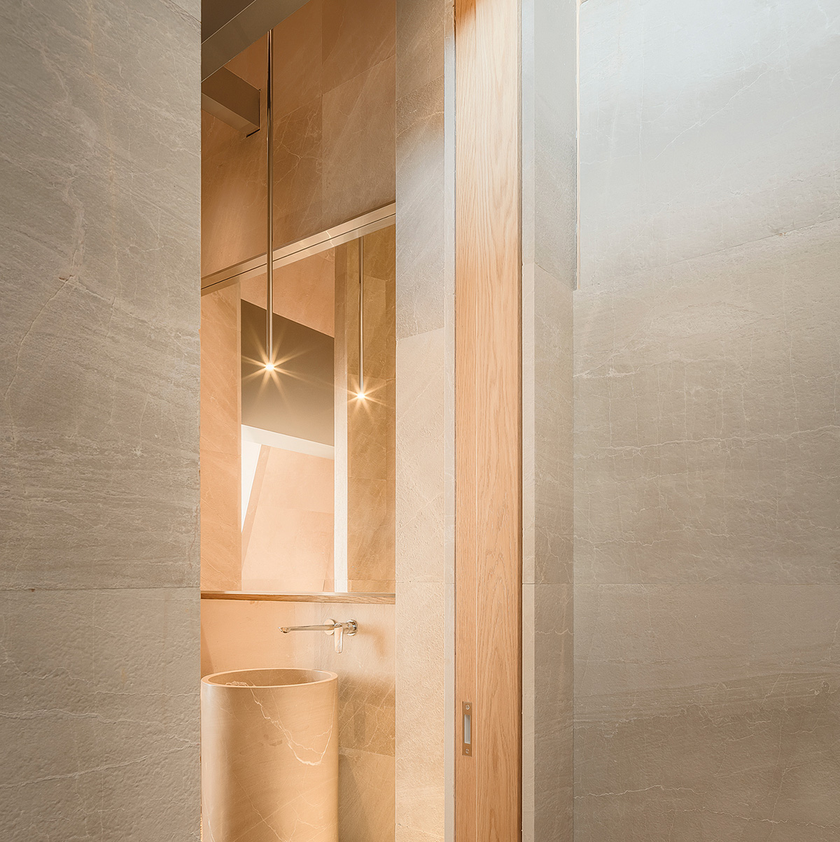 材料:贵州米黄石、橡木、质感漆