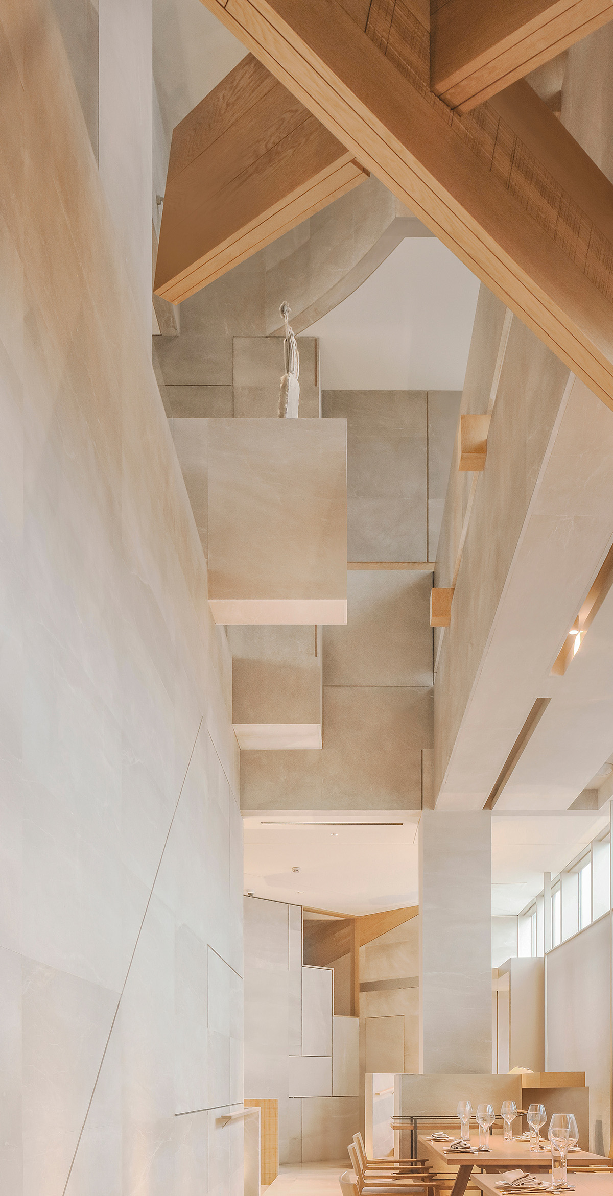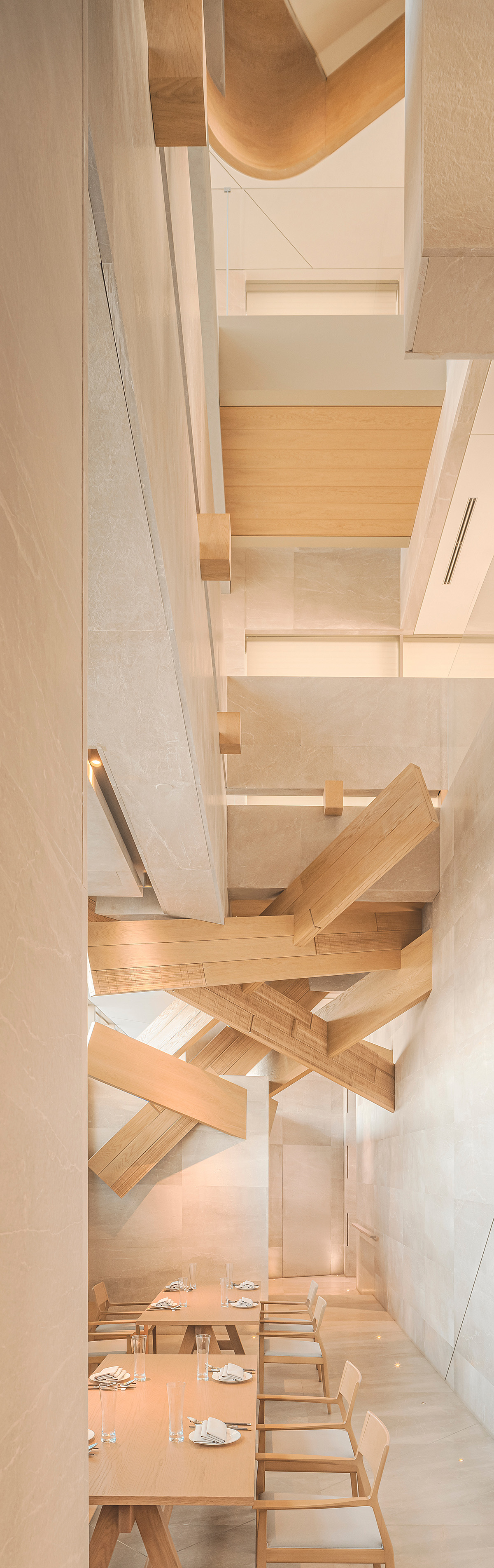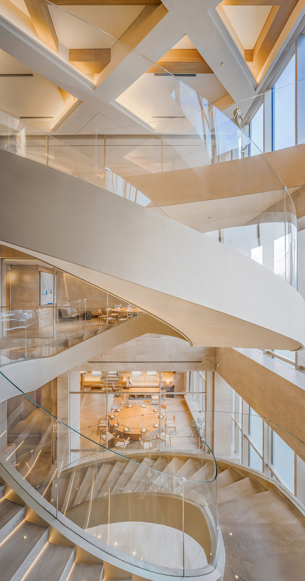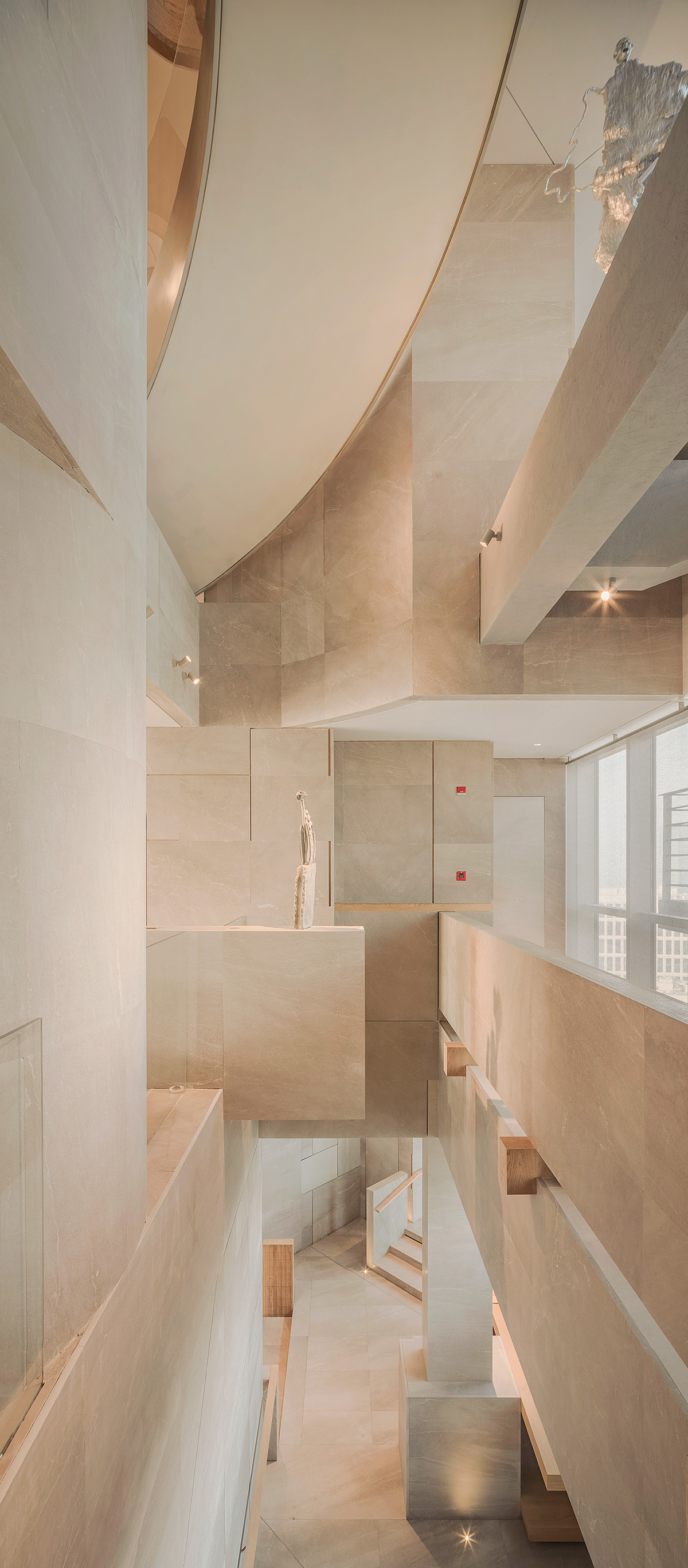 在这里设计细腻,承接光线塑造出丰富精致的构造,如多菱镜交错。复杂通透的构造环境里,不同的角落可以观察不同的景色;空间构成,能使整个项目公共区的层次更为丰富,共生出更为浓烈艺术气氛。