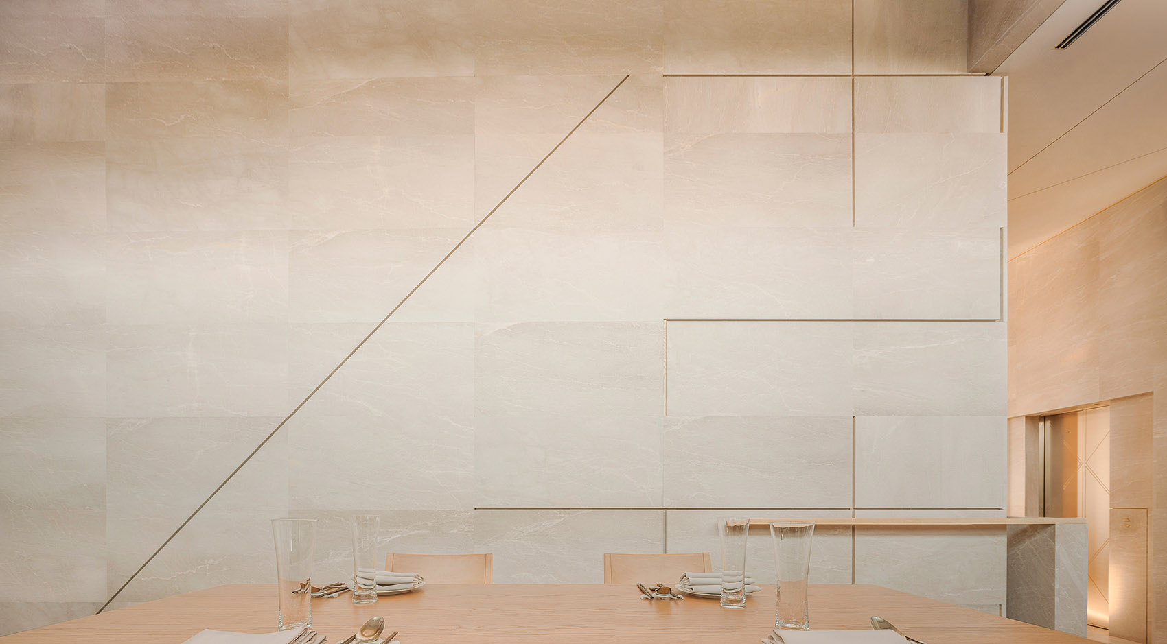 餐厅专用电梯,以专属二维码的方式预约进入,这好比进入了时光隧道。直达30层,经过酒窖走廊,视线豁然开朗。在素雅白衣,高挑精致的侍者引领下,别致景观目不暇接,流连间已进入客人的专属空间。