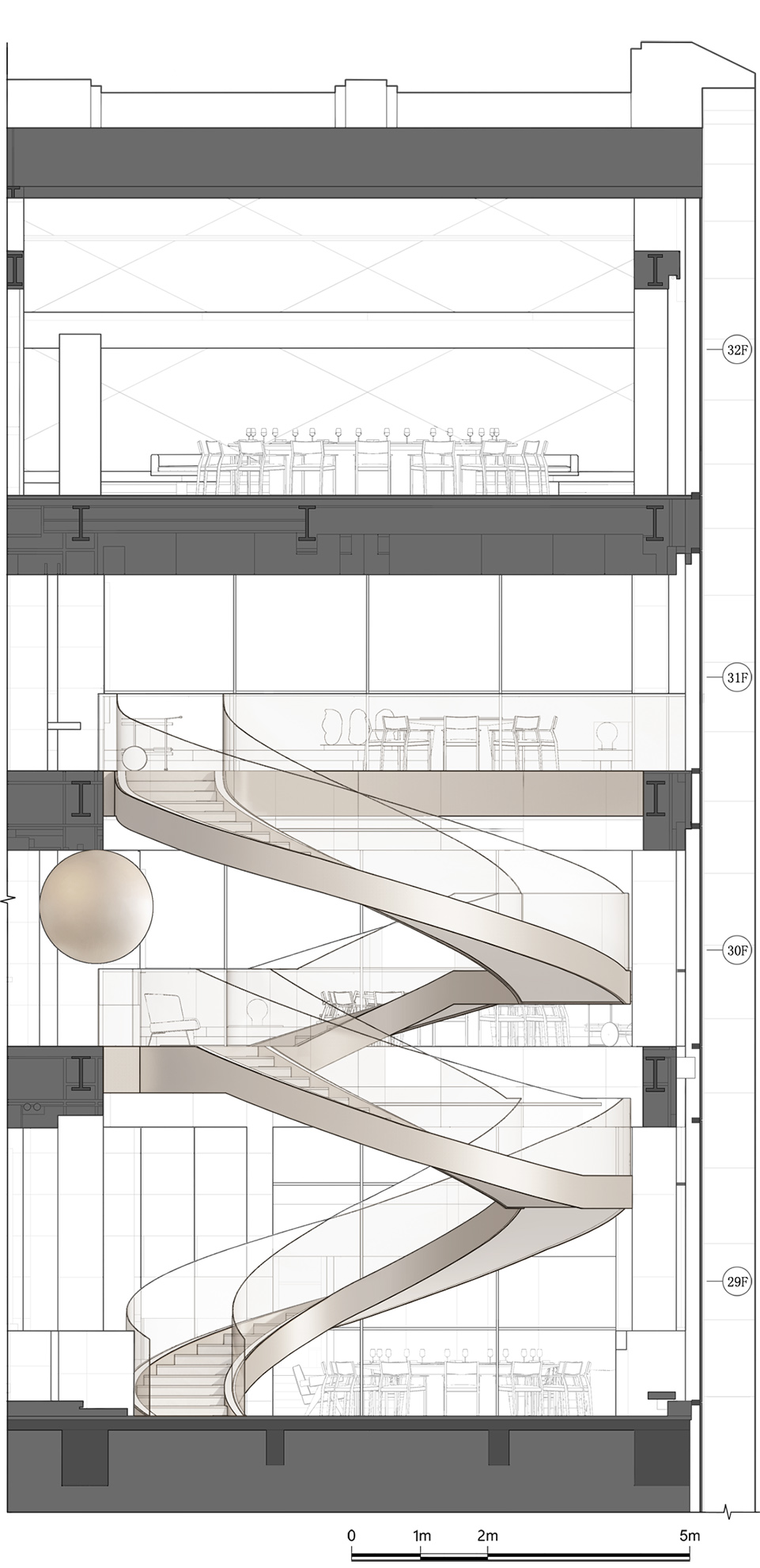 ▼联系29至31层的旋转楼梯