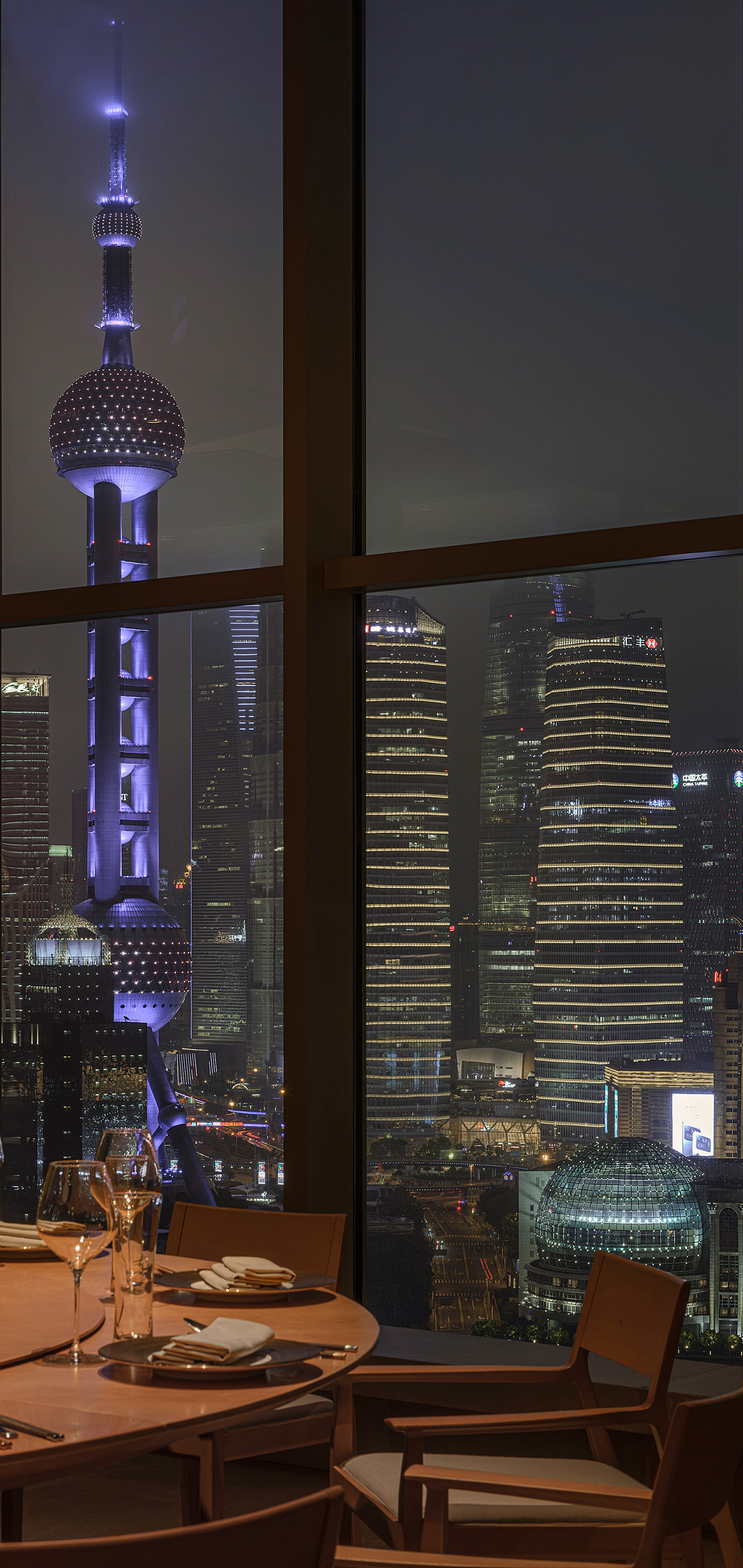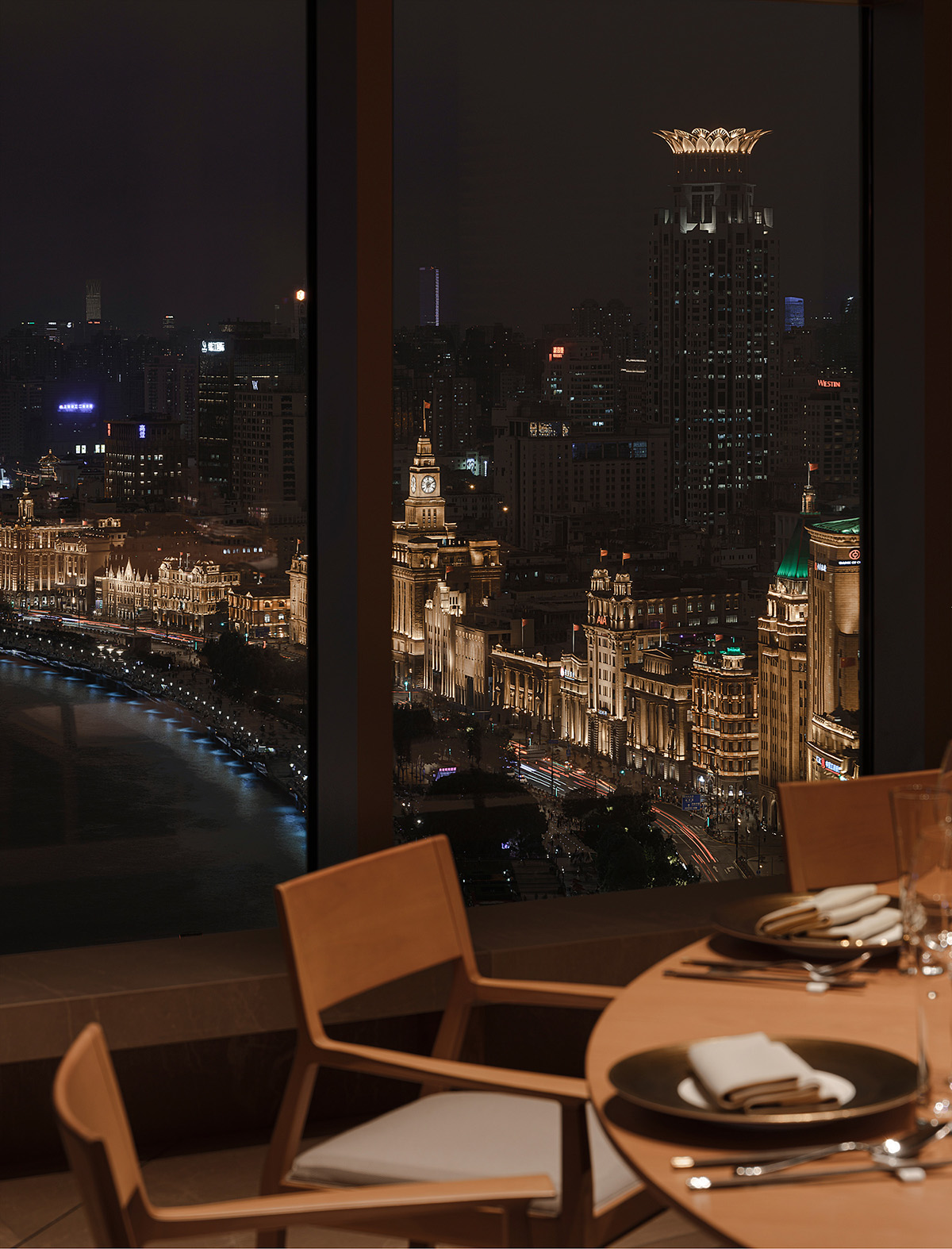 窗外映射外滩与陆家嘴的灯光,