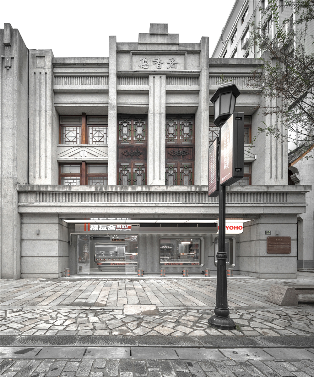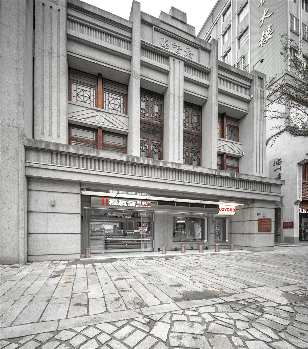 项目的选址位于温州公园路138号,是一栋有着民国风格的建筑。我们希望在这个建筑基础上能通过设计做出一些新变化。基于原有的建筑外观,我们提出了“制饼厂”的概念空间主题,希望打破建筑原有的“年代感”,拉进与新时代的距离。