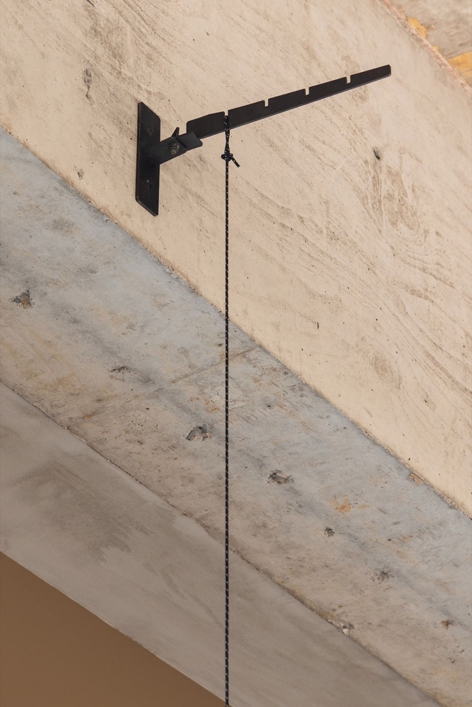 空间顶部有大量设备管道,我们依旧采用裸顶做法,统一水泥色处理。同时海洋板与顶部的交界面顺着管道设备的排布顺势而为,顶面各项设施自然保留,成为店铺装饰的一部分。