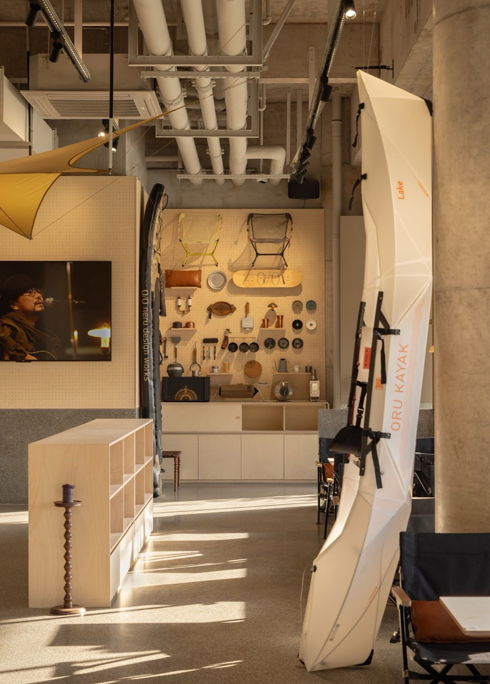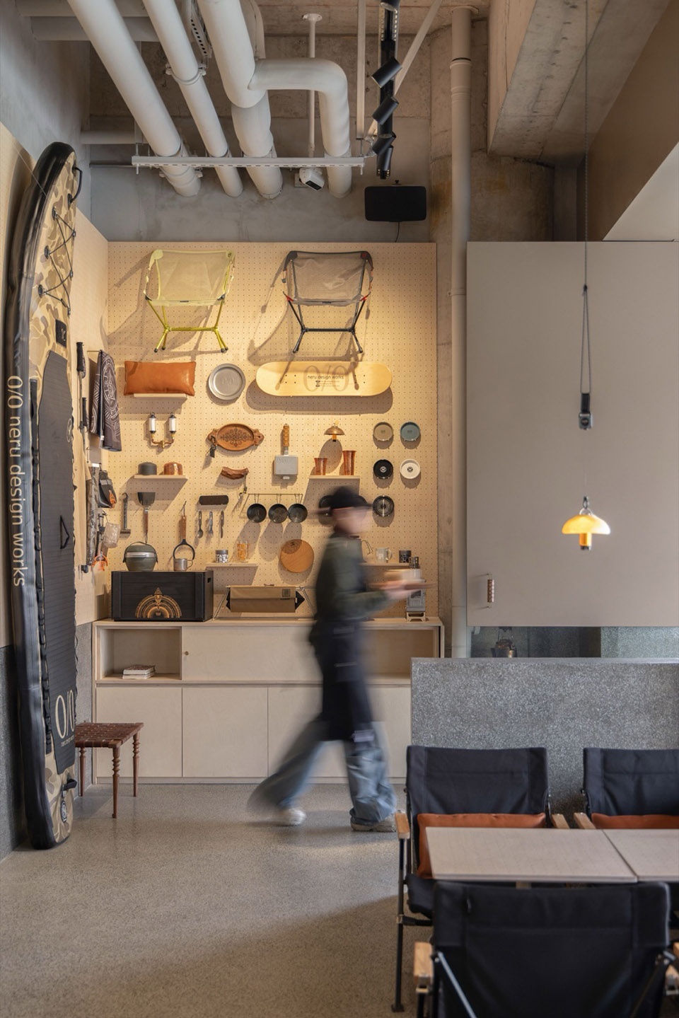 在Ceol里我们融入了诸多精致露营的细节,比如使用日本车库品牌Asimocrafts改装而来的门拉手,Goal Zero灯搭配0/0牛皮灯罩,为Ceol专属设计的吊灯挂件,Old Mountain的限定六角桌和MOLDS版的Kermit椅,精致露营的概念在潜移默化中融入Ceol的基因。