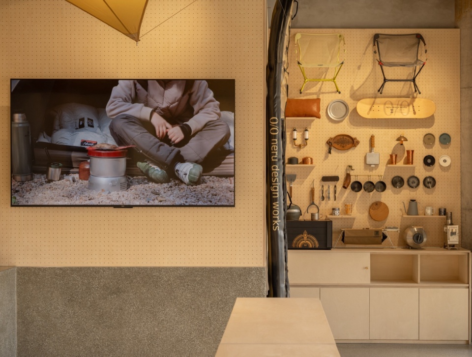 露营文化走到现阶段,玩家们开始追求轻量化精致露营 — 轻便高效但不失品质美学。Ceol在这样的文化推动下,设计力图克制简约。户外屋檐采用圆形钢管、以脚手架的链接方式搭建,有种“未完成”的装置感;屋檐面采用中空波纹铝板,也能有效化解雨水拍打屋面的声音。